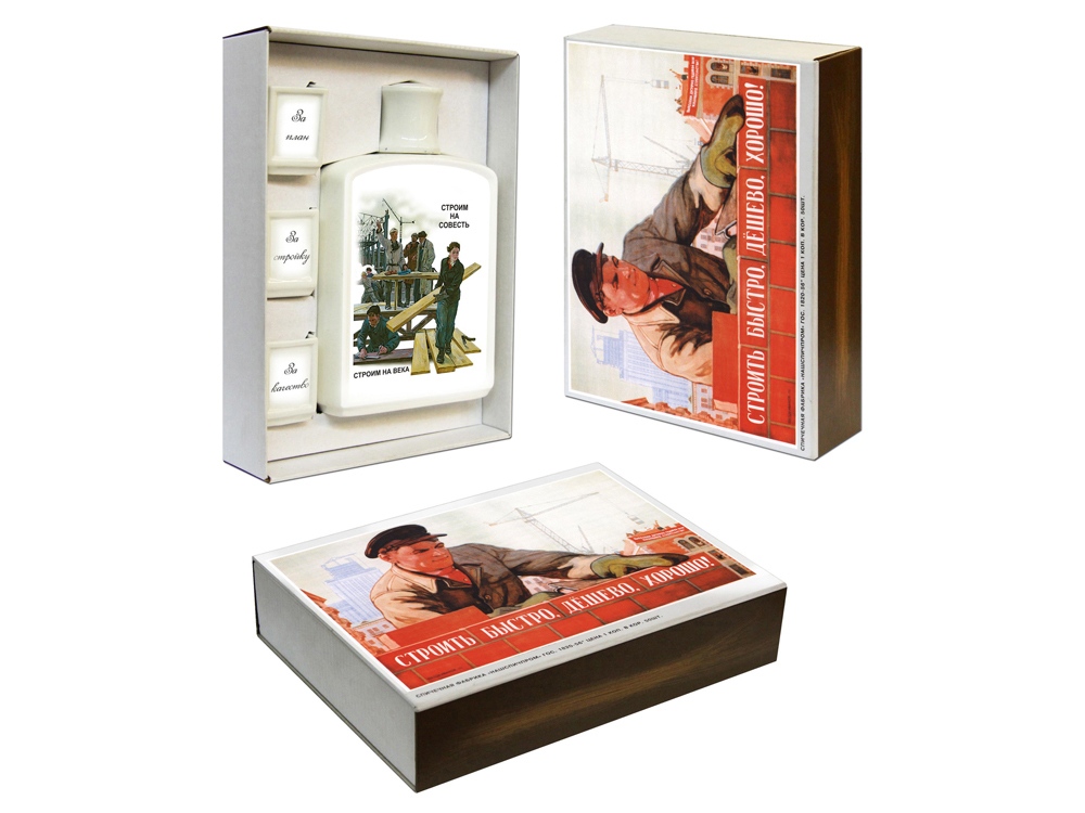Оригинальный набор спички можно отнести к разряду необычных подарков. В коробке стилизованной под большой коробок спичек вы найдете оригинальный графин из фарфора с тематическим изображением и три небольшие стопки. Вместе с коробкой набор весит 2 кг. Набор Спички - сравнительно недорогой бизнес подарок, который можно персонализировать. Приобретая данный набор вы можете быть уверены в том, что это уникальный и оригинальный подарок. Внимание! Данное изделие относится к категории повышенной хрупкости. Для обеспечения его целостности и безопасной транспортировки настоятельно рекомендуется использование обрешетки. Обрешеточная упаковка является обязательной при доставке, и компания Oasis не несёт ответственности за повреждения, возникшие в результате ненадлежащей упаковки или транспортировки без обрешетки.
