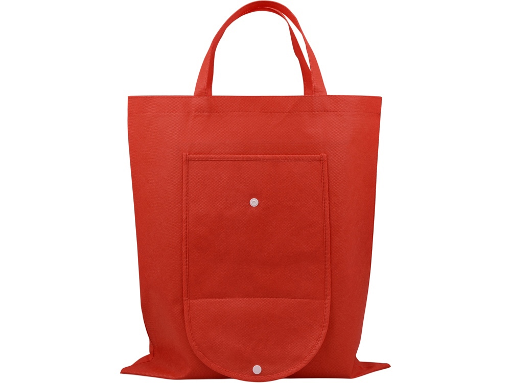 Вместительная складная сумка из нетканого материала с открытым основным отделением и карманом на пластиковой кнопке спереди. Многоразовая сумка- отличная альтернатива пластиковому пакету. Высота ручек 15 см.