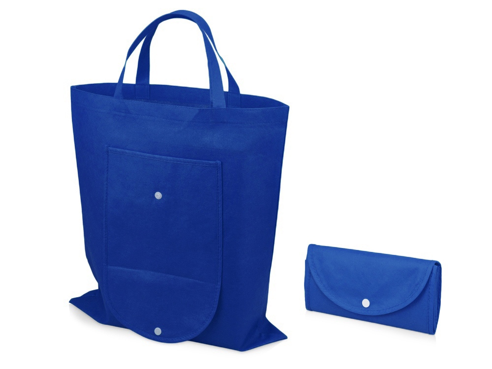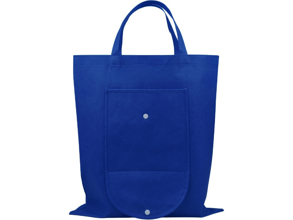 Вместительная складная сумка из нетканого материала с открытым основным отделением и карманом на пластиковой кнопке спереди. Многоразовая сумка- отличная альтернатива пластиковому пакету. Высота ручек 15 см.