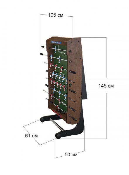 • Так же длинные ноги оборудованы удобными колесами для транспортировки и сделаны таким образом, чтобы стол при игре не гулял и был максимально устойчив