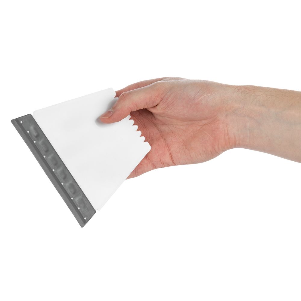Все 4 стороны скребка рабочие: резиновый водосгон с широкой стороны, зубья-ледорубы с узкой и две скошенные грани по бокам.