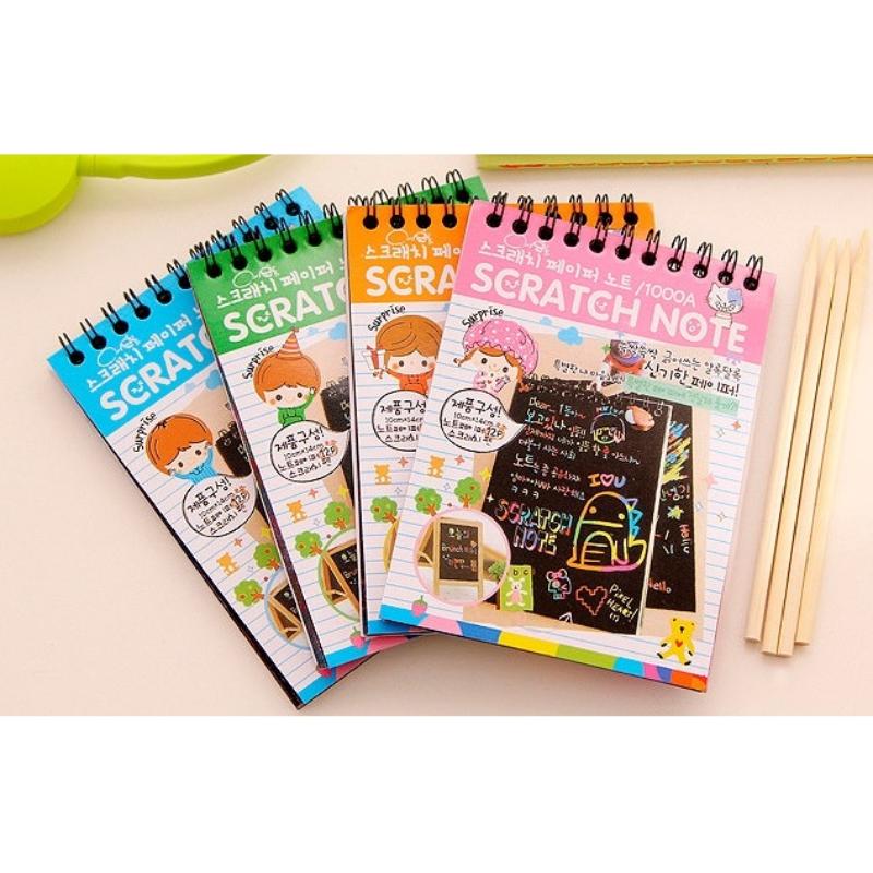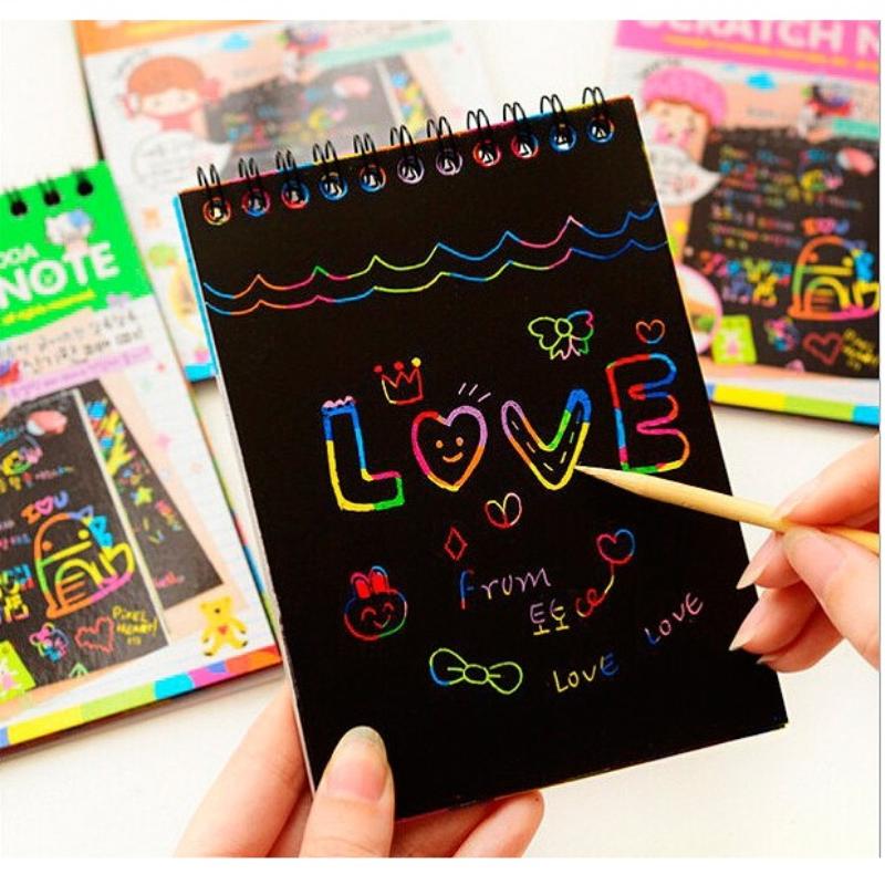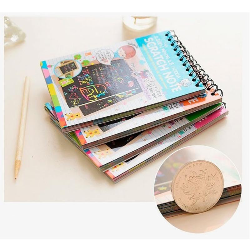 Блокнот со скретч слоем на листах. В комплекте идет палочка для создания разноцветных гравюр.