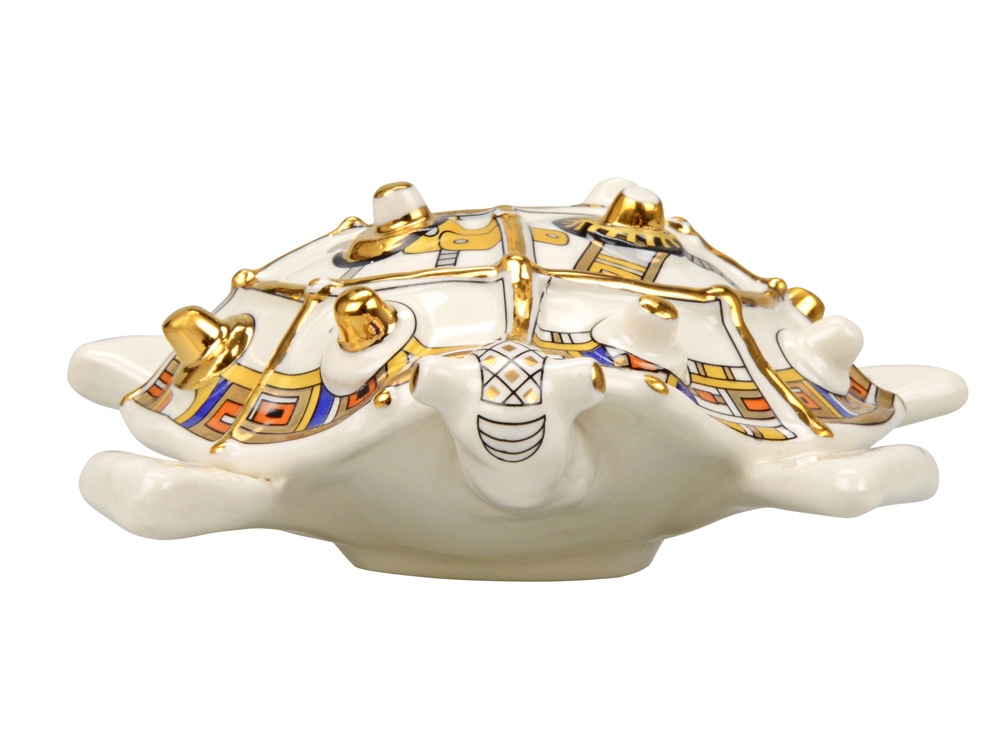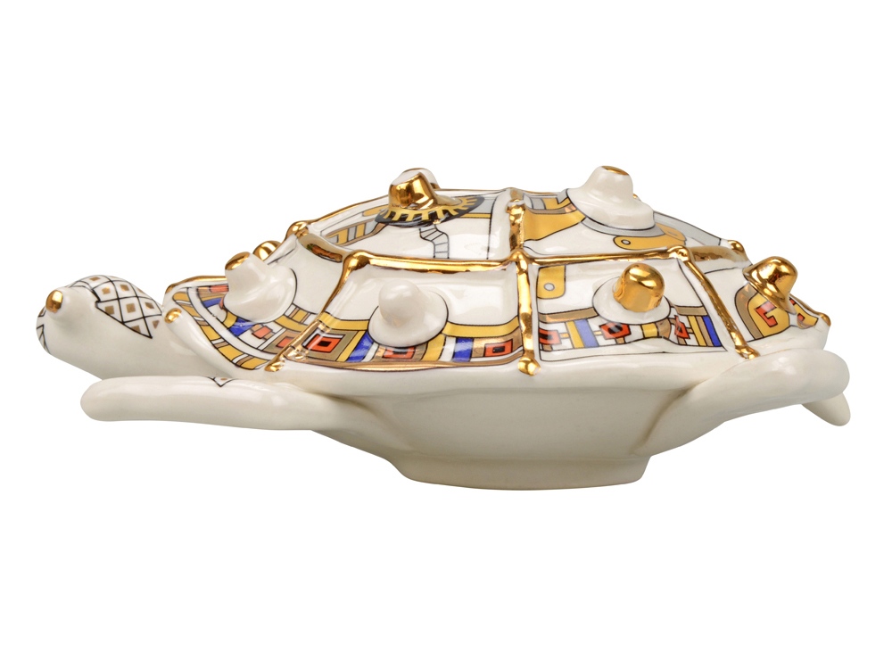 А вы знали, что черепаха - это символ достатка и благополучия? Скульптура Черепаха - это великолепный символический подарок с уникальной ручной росписью, выполненный в стиле стимпанк. Представьте себе мир, где паровые машины и другие ретро-технологии не исчезли, а достигли высочайшего развития. Так и выглядит стимпанк! Неповторимые формы, применение ручной работы необычного геометрического орнамента в комбинации с высокой техникой мазка дают изделиям Арт–Модерн керамики оригинальный колорит и притягательность, а небольшой объем производства и индивидуальная роспись делают изделия исключительными. Внимание! Данное изделие относится к категории повышенной хрупкости. Для обеспечения его целостности и безопасной транспортировки настоятельно рекомендуется использование обрешетки. Обрешеточная упаковка является обязательной при доставке, и компания Oasis не несёт ответственности за повреждения, возникшие в результате ненадлежащей упаковки или транспортировки без обрешетки.