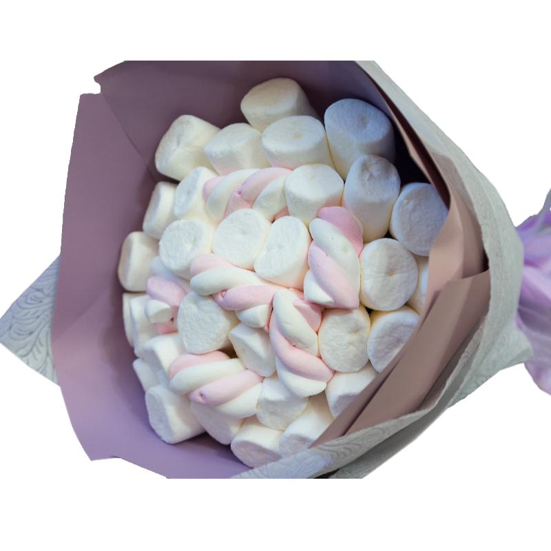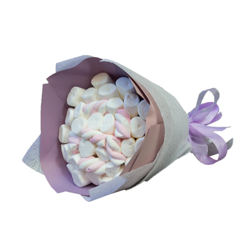 Сладкий букет Зефирное облако порадует ароматом этой низкокалорийной сладости и нежно-розовым цветом, в котором легко прочитается ваше чувство. Ни одна любительница сладкого не устоит перед его очарованием.