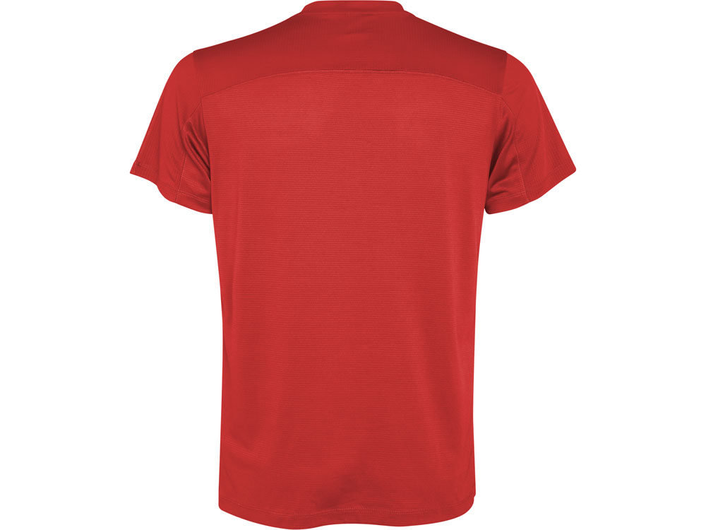 Мужская технологическая футболка с короткими рукавами. Легкая ткань из переработанного полиэстера. · Воротник с перекрещенными деталями. · Кокетка сзади и рукава из дышащей ткани. · Направленные вперед и наклонные швы по бокам и плечам. · Комбинация дышащих и эластичных тканей.