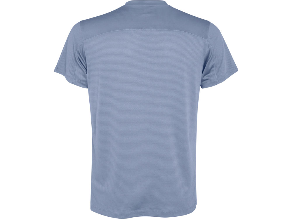 Мужская технологическая футболка с короткими рукавами. Легкая ткань из переработанного полиэстера. · Воротник с перекрещенными деталями. · Кокетка сзади и рукава из дышащей ткани. · Направленные вперед и наклонные швы по бокам и плечам. · Комбинация дышащих и эластичных тканей.