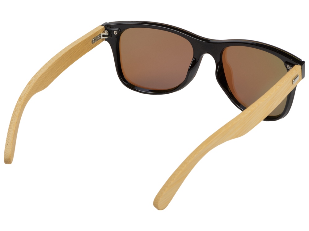 Стильные солнцезащитные очки изготовлены с применением экологически чистого материала - бамбука. Дужки из 100% натурального бамбука не имеют лишних деталей и приятны на ощупь. Прочная конструкция креплений. 100% защита от вредного УФ-излучения (UV 400). Сплошная зеркальная линза делает их стильным аксессуаром. Поставляются в качественном футляре из неопрена.