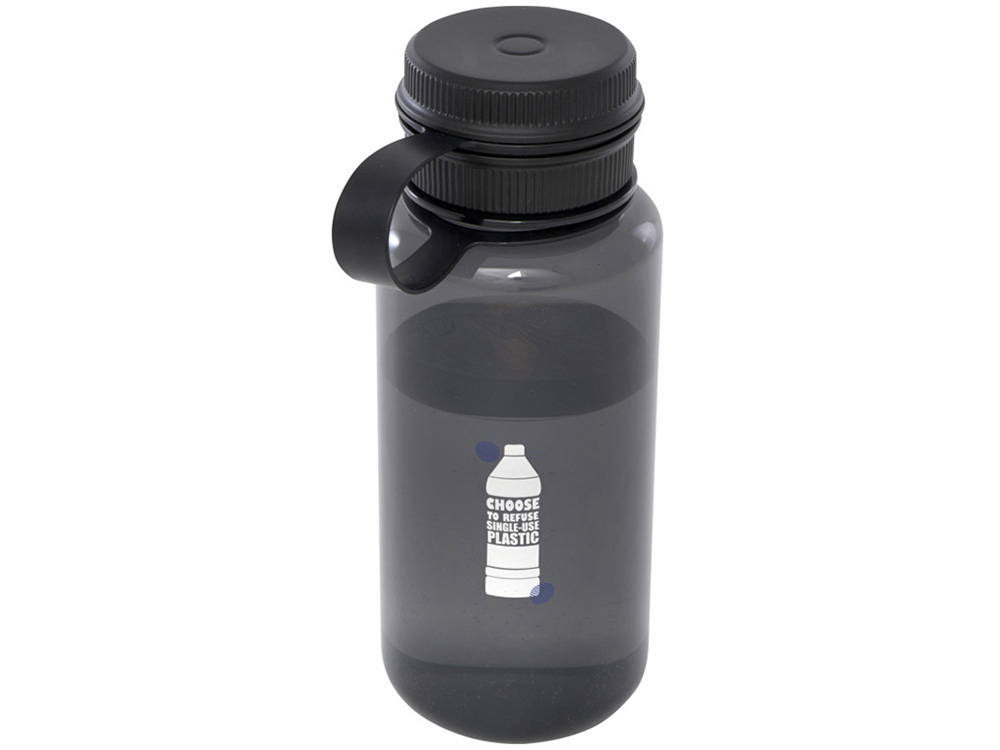 Одностенная спортивная бутылка, изготовленная из переработанного ПЭТ-пластика, сертифицированного RCS, с завинчивающимся верхом, герметичной крышкой и удобной ручкой для переноски, встроенной в крышку. Конструкция с двумя отверстиями для легкой очистки и наполнения. В соответствии с одобренным EFSA (Европейским агентством по безопасности пищевых продуктов) процессом переработки ПЭТ. Объем: 900 мл. Переработанный PET пластик.