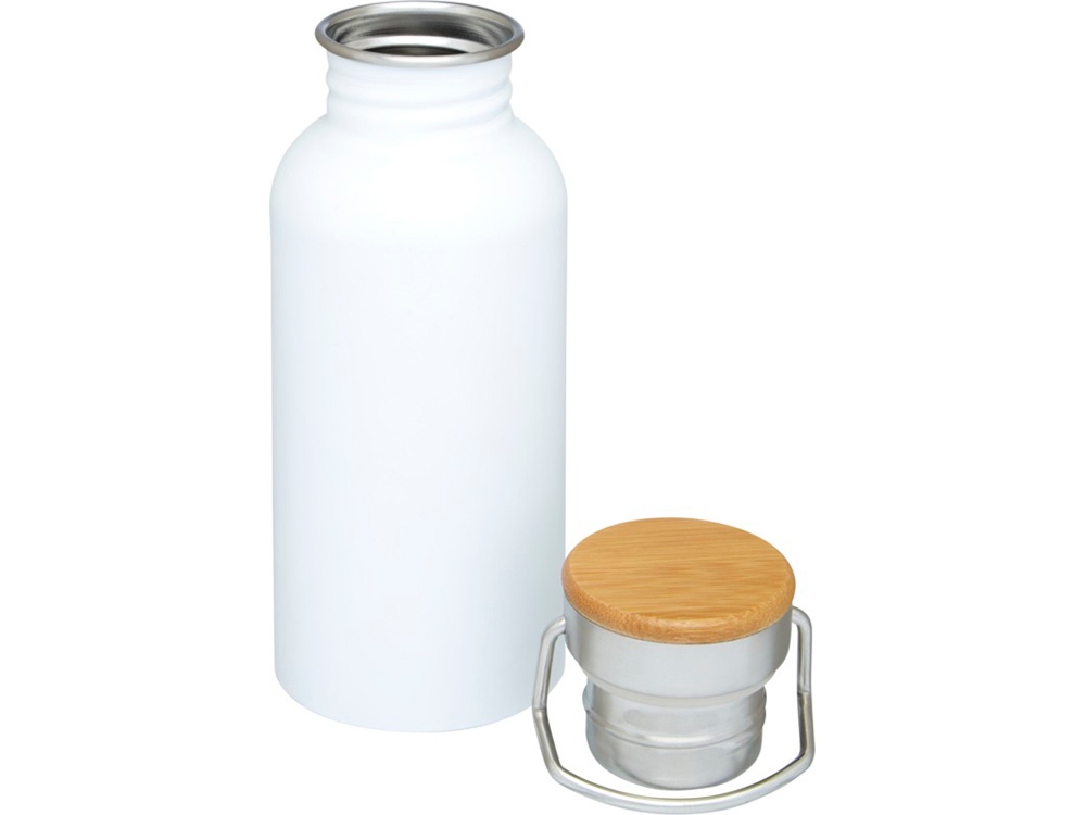 Бутылка из нержавеющей стали с одинарными стенками и съемной крышкой. На крышке есть бамбуковый колпачок и ручка для удобной переноски. Объем 550 мл. Представлена в подарочной коробке Avenue.