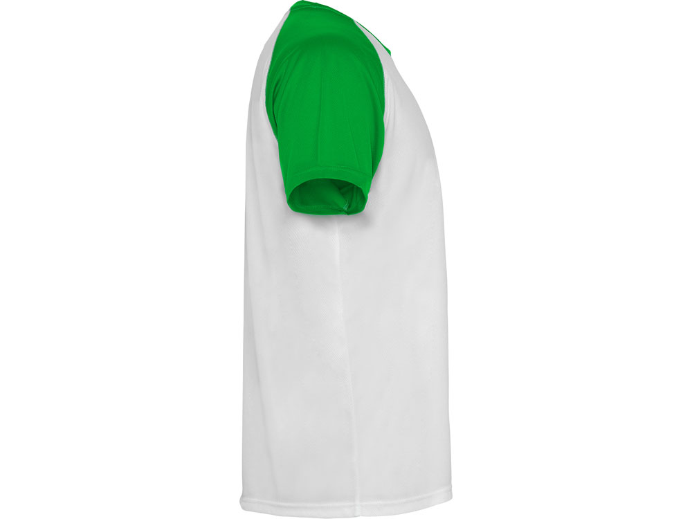 Спортивная футболка с контрастным рукавом реглан. Круглый вырез горловины с контрастной тесьмой. Технологическое дышащее полотно. В ассортименте так же представлена аналогичная детская модель Indianapolis