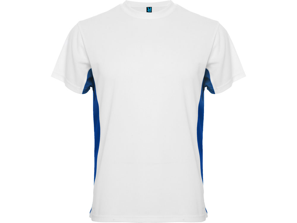 Спортивная футболка из технологического полотна и колорблок вставками. Круглый вырез горловины укреплен тесьмой. Контрастные вставки по бокам. Дышащее технологичное полотно - легко стирается и быстро сохнет.