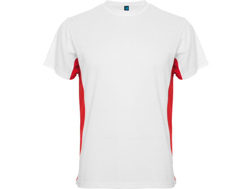 Спортивная футболка из технологического полотна и колорблок вставками. Круглый вырез горловины укреплен тесьмой. Контрастные вставки по бокам. Дышащее технологичное полотно - легко стирается и быстро сохнет.