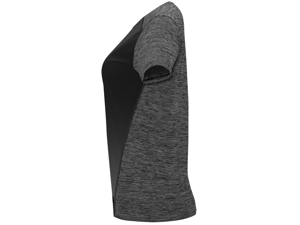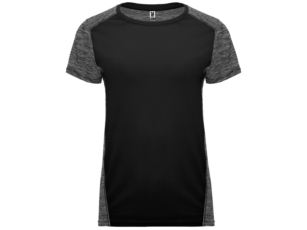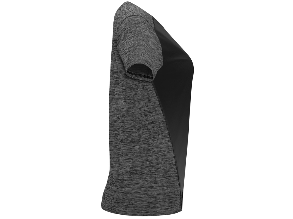 Футболка с коротким рукавом из технологического полотна. Круглый вырез горловины. Комбинация двух полиэстеровых полотен. Основное полотно на полочке со структурой, дополнительное полотно на спинке, рукавах и плечах с меланжевым эффектом. Задняя часть немного длиннее. Легко сохнущее дышащее полотно. В ассортименте так же присутствует аналогичная мужская и детская модели Zolder