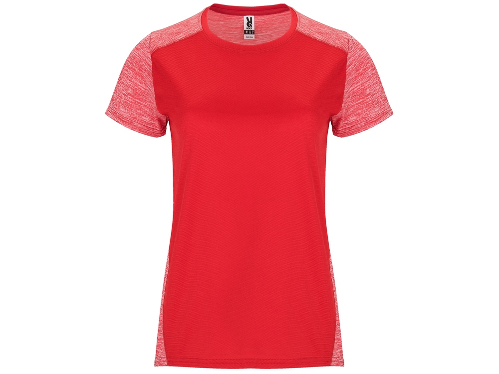 Футболка с коротким рукавом из технологического полотна. Круглый вырез горловины. Комбинация двух полиэстеровых полотен. Основное полотно на полочке со структурой, дополнительное полотно на спинке, рукавах и плечах с меланжевым эффектом. Задняя часть немного длиннее. Легко сохнущее дышащее полотно. В ассортименте так же присутствует аналогичная мужская и детская модели Zolder