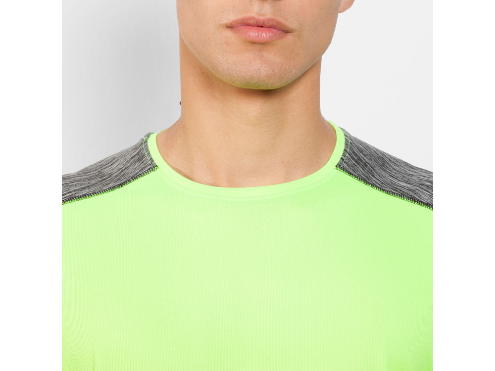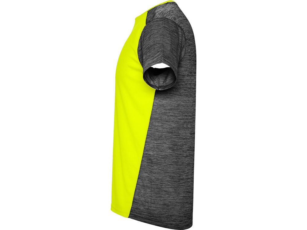 Футболка с коротким рукавом из технологического полотна. Круглый вырез горловины. Комбинация двух полиэстеровых полотен. Основное полотно на полочке со структурой, дополнительное полотно на спинке, рукавах и плечах с меланжевым эффектом. Задняя часть немного длиннее. Легко сохнущее дышащее полотно. В ассортименте так же присутствует аналогичная детская модель Zolder