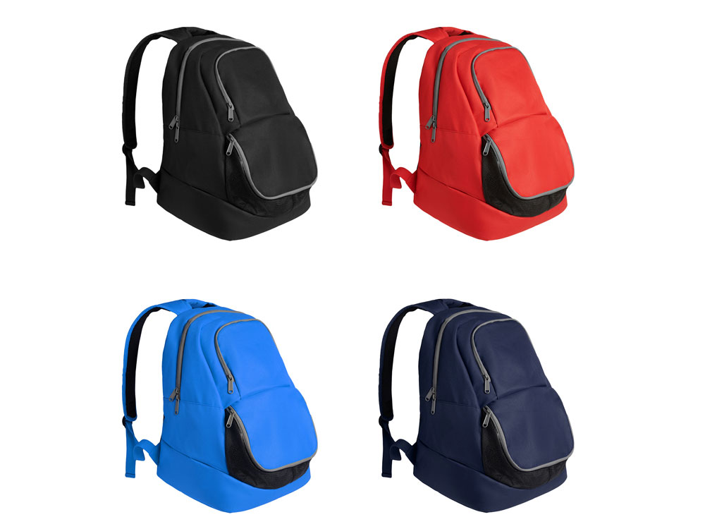 Спортивный рюкзак с эргономичным дизайном. Двойные усиленные плечевые ремни и одна ручка. Стеганая спинка. Переднее отделение для обуви. Одно основное отделение с двойным бегунком и наружный передний карман меньшего размера. · Контрастные застежки-молнии серого цвета. Детали черного цвета. Водонепроницаемый.