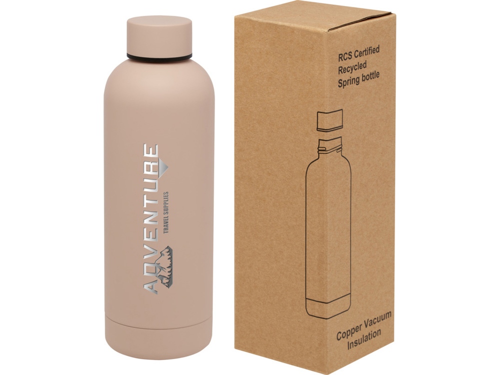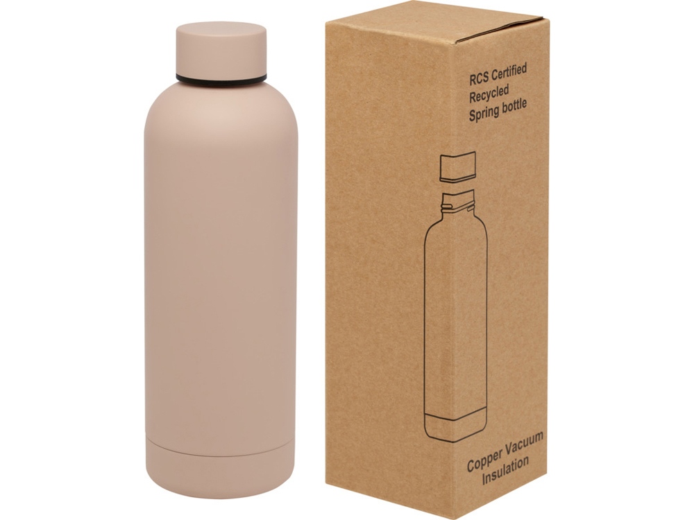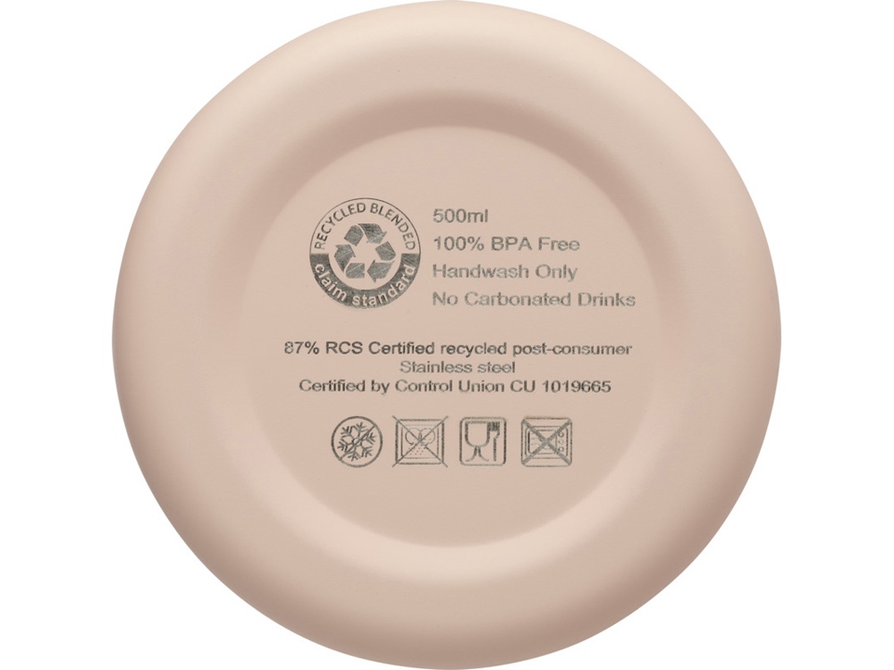 Бутылка из нержавеющей стали, сертифицированная RCS, с медной вакуумной изоляцией и лаконичным дизайном. Изолированная конструкция из нержавеющей стали предотвращает образование конденсата внутри бутылки, а модное матовое порошковое покрытие делает бутылку особенно прочной. Не содержит БФА, протестирована и одобрена в соответствии с немецким законодательством о безопасности пищевых продуктов (LFGB). Проверена на содержание фталатов и одобрена для использования в соответствии с правилами REACH. Объем 500 мл. Рекомендуется мыть вручную. Поставляется в подарочной коробке из переработанного картона. Recycled stainless steel.