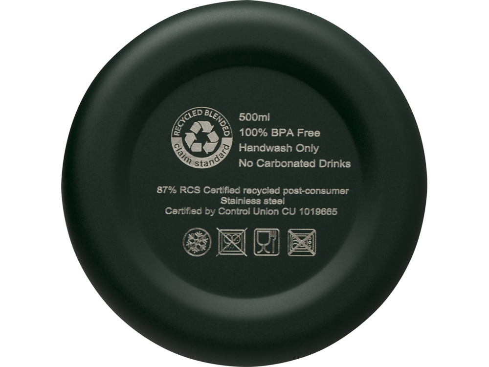 Бутылка из нержавеющей стали, сертифицированная RCS, с медной вакуумной изоляцией и лаконичным дизайном. Изолированная конструкция из нержавеющей стали предотвращает образование конденсата внутри бутылки, а модное матовое порошковое покрытие делает бутылку особенно прочной. Не содержит БФА, протестирована и одобрена в соответствии с немецким законодательством о безопасности пищевых продуктов (LFGB). Проверена на содержание фталатов и одобрена для использования в соответствии с правилами REACH. Объем 500 мл. Рекомендуется мыть вручную. Поставляется в подарочной коробке из переработанного картона. Recycled stainless steel.
