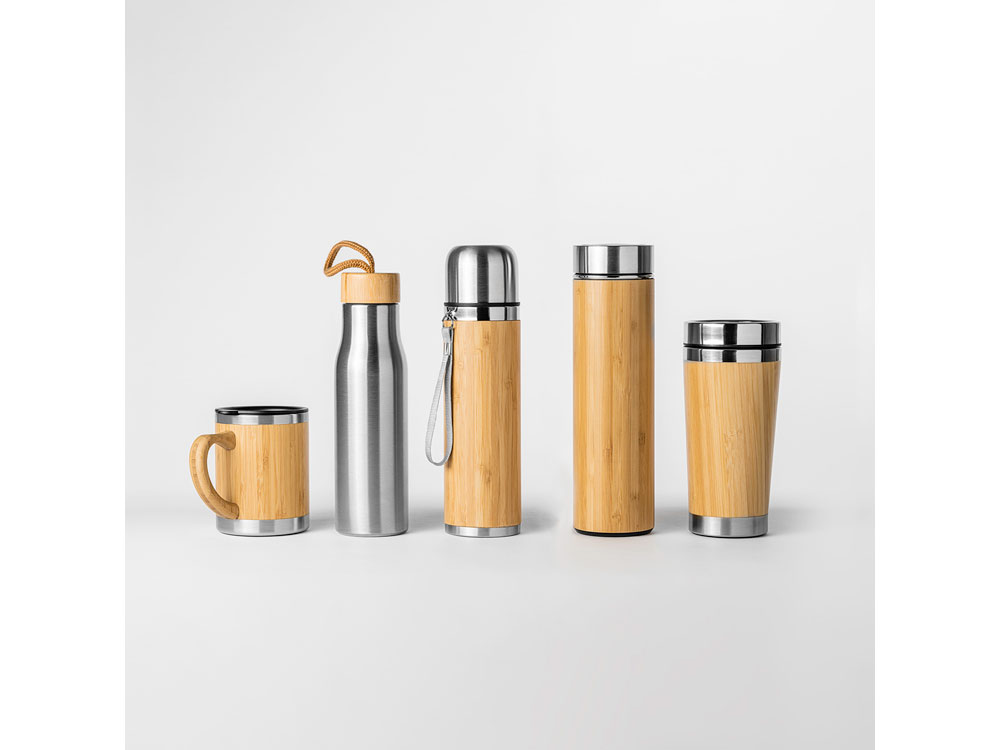 Стакан из нержавеющей стали 304 с бамбуковой внешней отделкой. Емкость 500 мл