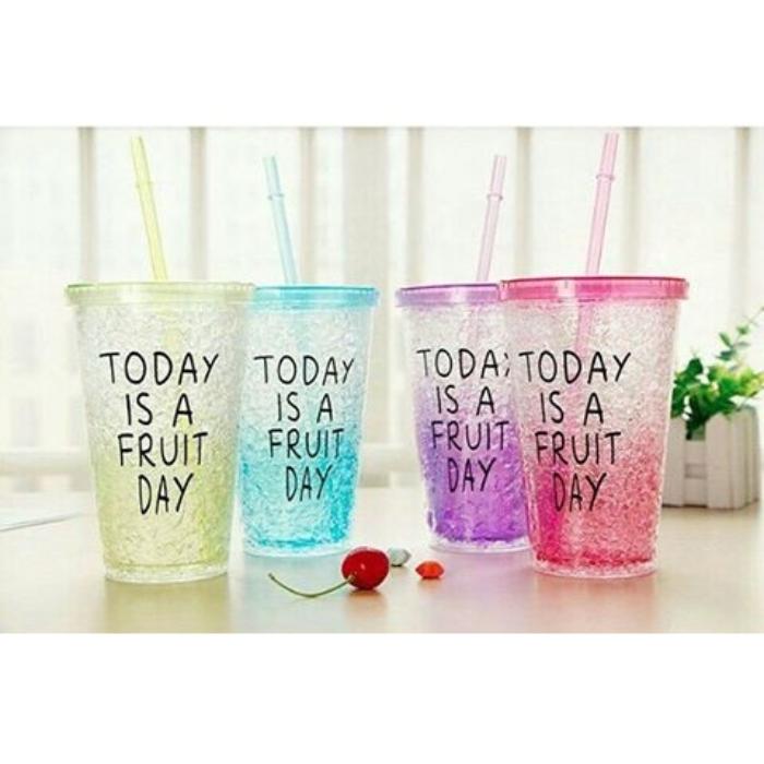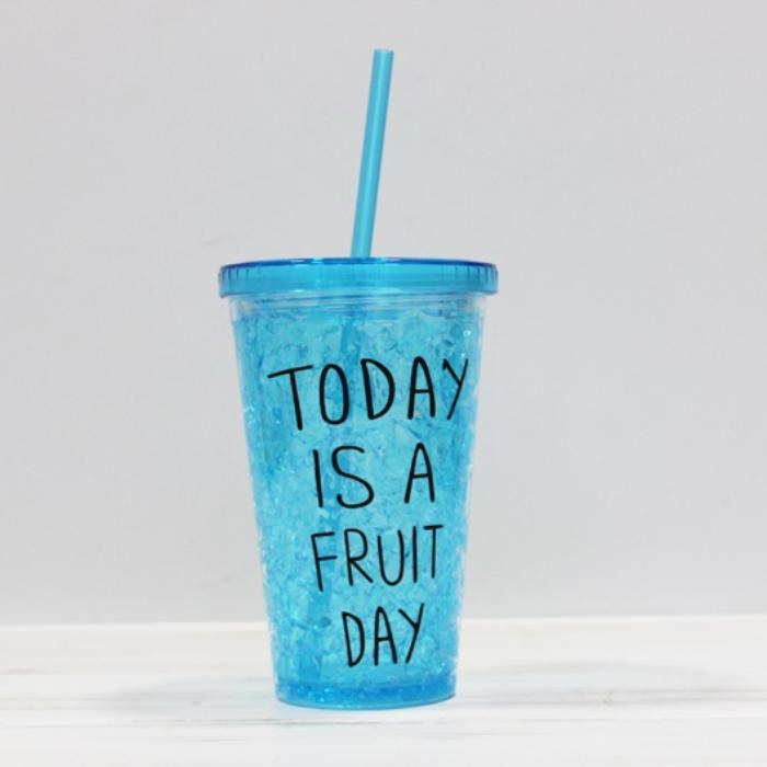 Всегда иметь под рукой освежающий прохладный напиток - просто мечта каждого из нас летом. Ее нетрудно исполнить с таким стаканом-холодильником Fruit Day, который можно взять с собой в дорогу, на работу или на тренировку. Кроме того, из этого стакана с трубочкой и герметичной крышкой очень удобно пить.