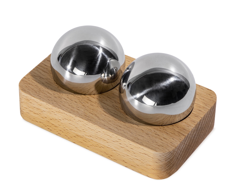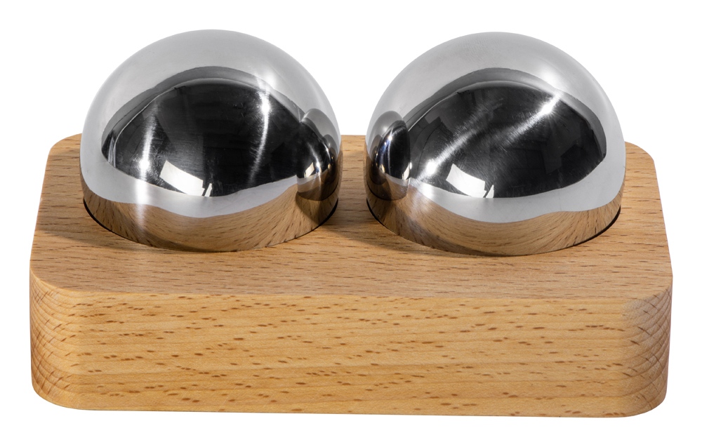 Набор состоит из двух сфер, выполненных из нержавеющей стали, и подставки из дерева, которая позволяет хранить их надлежащим образом и не дает укатываться с полки. Шары изнутри наполнены специальной охлаждающей жидкостью (95% воды +5% глицерина), которая помогает быстрее понизить температуру напитка. Жидкость надежно запаяна, не является токсичной, не просачивается сквозь металл. Нержавеющая пищевая сталь 304 марки, из которой состоит шар, не изменяет вкус, цвет и запах напитков, в том числе и алкогольных, в которые помещено выполненное из этого материала изделие. Сферы для охлаждения виски не только эффектно выглядят, но и весьма полезны, быстро понижая температуру, а главное — не разбавляют напиток в процессе. Перед использованием шары нужно положить в морозильную камеру на несколько часов (от трех до шести), а затем поместить в бокал для виски. Готово! Подставка не только обрамляет основной компонент набора, подавая его и дополняя, но и решает важный вопрос хранения шаров, не давая им укатываться. - просты в использовании - многочисленные возможности для персонализации - материалы высокого качества, безопасные для человека - интересный формфактор Для продления жизни подставки ее можно смазывать растительным, оливковым, льняным маслом. Не замачивать в воде, не пересушивать. На время пропитки шары следует извлечь из выемок.