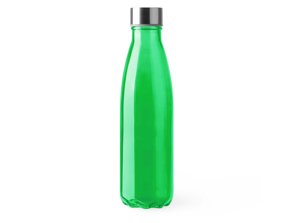 Стеклянная бутылка с полупрозрачным цветным корпусом. Крышка из нержавеющей стали. Объем 650 мл.