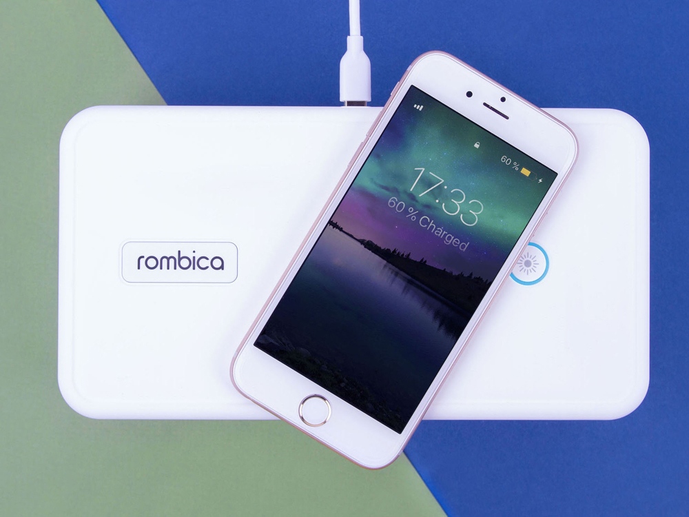 Портативный стерилизатор с беспроводной зарядкой Rombica Sterilizer Pro. — стерилизация мобильных устройств, — эффективность стерилизации 99,9%, — борьба с вирусами и бактериями, — беспроводное зарядное устройство, — стерилизация поверхности устройств на 360°, — автоматическая работа.