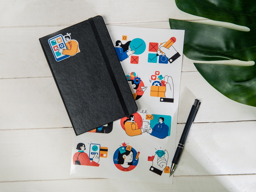 Лист с наклейками формата А4, которые можно использовать для украшения ноутбуков, планшетов, телефонов, дневников, скетчбуков и многого другого. Особенности: ✔ Эксклюзивный дизайн – только ваши идеи и любимые темы! ✔ Разнообразие форм и размеров – маленькие, средние и крупные стикеры для любого декора. ✔ Качественная печать – яркие цвета, четкие линии, стойкие к выцветанию. ✔ Легко наклеиваются и надежно держатся. ✔ Универсальное применение – подходит для творчества, скрапбукинга, оформления подарков и личных вещей.