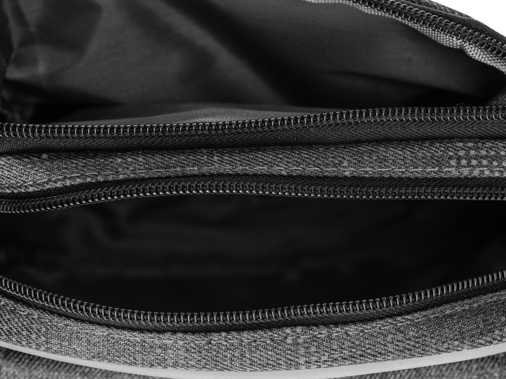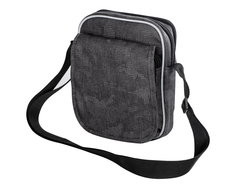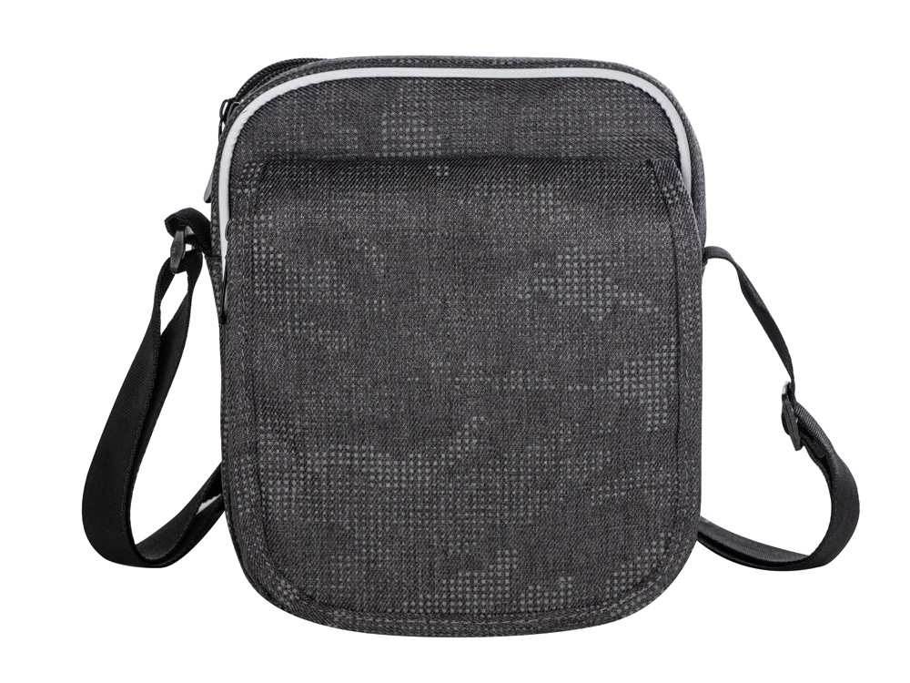 Материал сумки имеет светоотражающее камуфляжное нанесение. Спереди по краю сумки расположена светоотражающая полоса. Все это обеспечивает дополнительную безопасность в темное время суток. Удобная конструкция для всего самого необходимого: 2 отделения и передний карман на молнии с клапаном на липучке. Длинный ремень на плечо регулируется по длине и подойдет для людей любого роста.