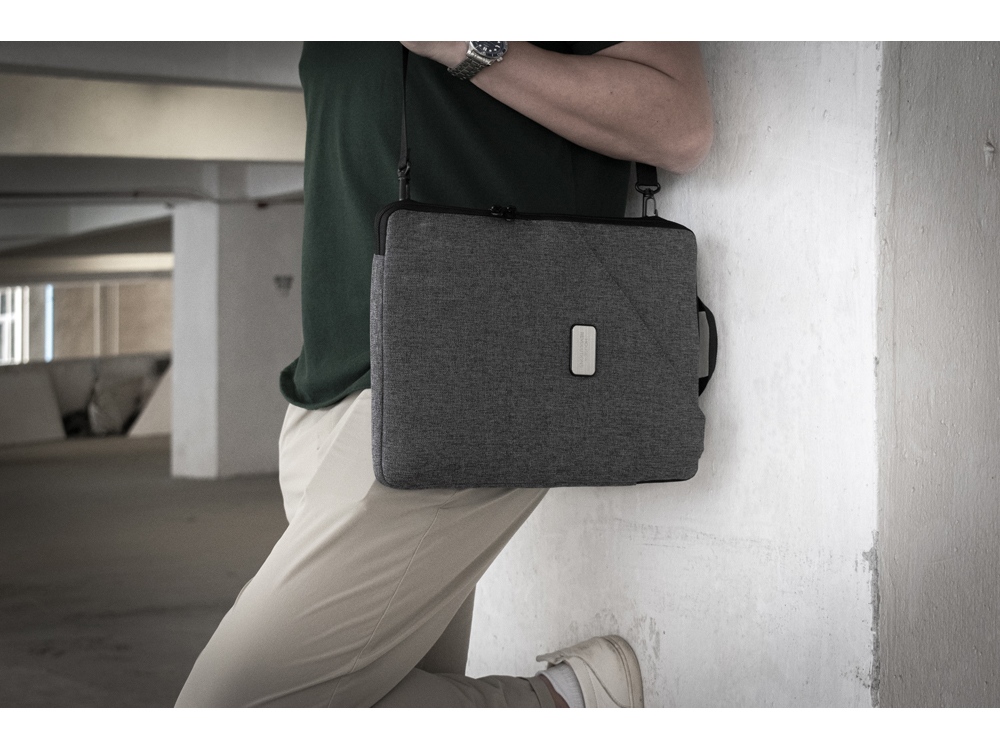 Конструкция этой сумки позволяет носить ее любым удобным способом: на плече, в руке или на спине, благодаря отстегивающейся лямке и креплениям под нее с четырех сторон сумки. - спереди застегивающийся на липучку карман - внутри 2 отделения с плотной перегородкой - утолщенные стенки для идеальной сохранности и защиты вашего гаджет от царапин и ударов - водоотталкивающая и стойкая к пятнам ткань Комплектуется 2мя съемными шильдами под нанесение вашего логотипа - металлическим и из эко кожи.