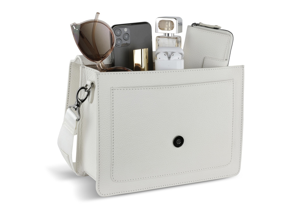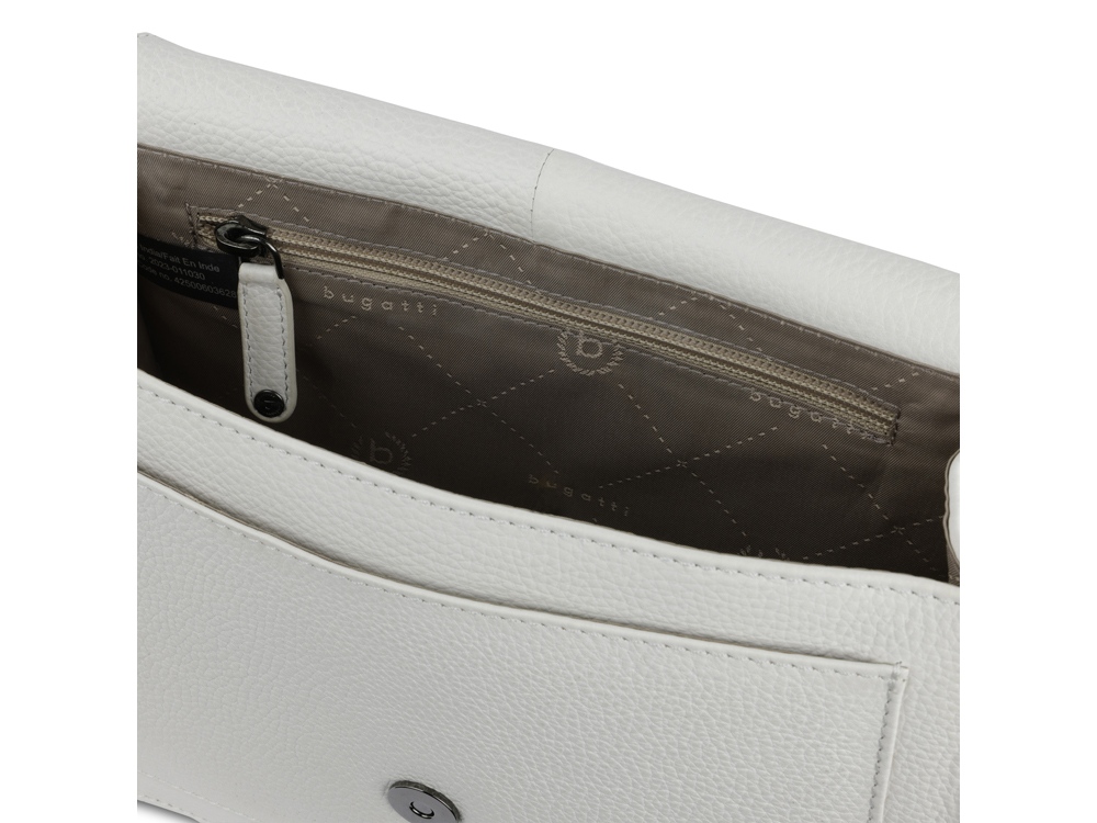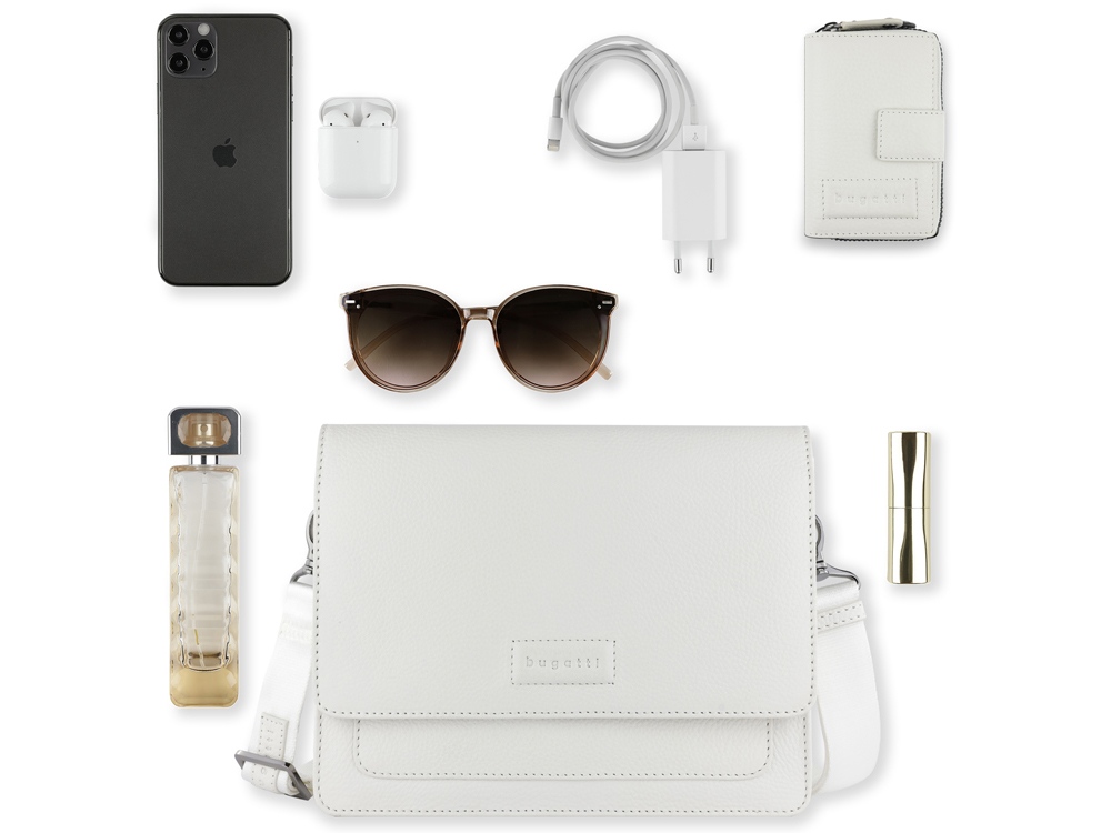 ЖЕНСКАЯ СУМКА ЧЕРЕЗ ПЛЕЧО ELSA Готовы к поездке в выходные? Мы раскрасим вашу ленту в соцсетях невероятной коллекцией ELSA. Коллекция ELSA предлагает широкий ассортимент аксессуаров и сумок разных форм и размеров, от элегантных кошельков и изящных наплечных сумочек для выхода в свет до вместительных шопперов и дорожных сумок для путешествий. Все модели серии изготовлены из высококачественной мягкой воловьей кожи и представлены в классическом черном, белом и бежевом цветах. Элегантное тиснение логотипа Bugatti придает очарование каждой модели. Коллекция выделяется продуманной функциональной организацией внутреннего пространства и защитой от радиочастотной идентификации RFID. Кошельки и ключницы оснащены специальным защитным слоем из фольги, который предотвращает незаконное сканирование вашей личной информации и препятствует списанию денежных средств с банковских карт. Какой бы аксессуар или сумку вы бы ни предпочли, будьте уверены, что с коллекцией ELSA вы точно окажетесь в центре внимания. СВОЙСТВА Функциональная организация: основное отделение на магнитной кнопке с карманом на молнии и открытым карманом, передний открытый карман, задний карман на молнии, съемный регулируемый плечевой ремень (до 130 см). Материал: воловья кожа/полиэстер Размер: 25 х 8,5 х 20 см Вес: 0,54 кг