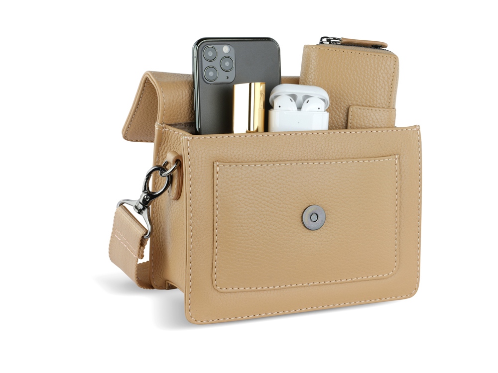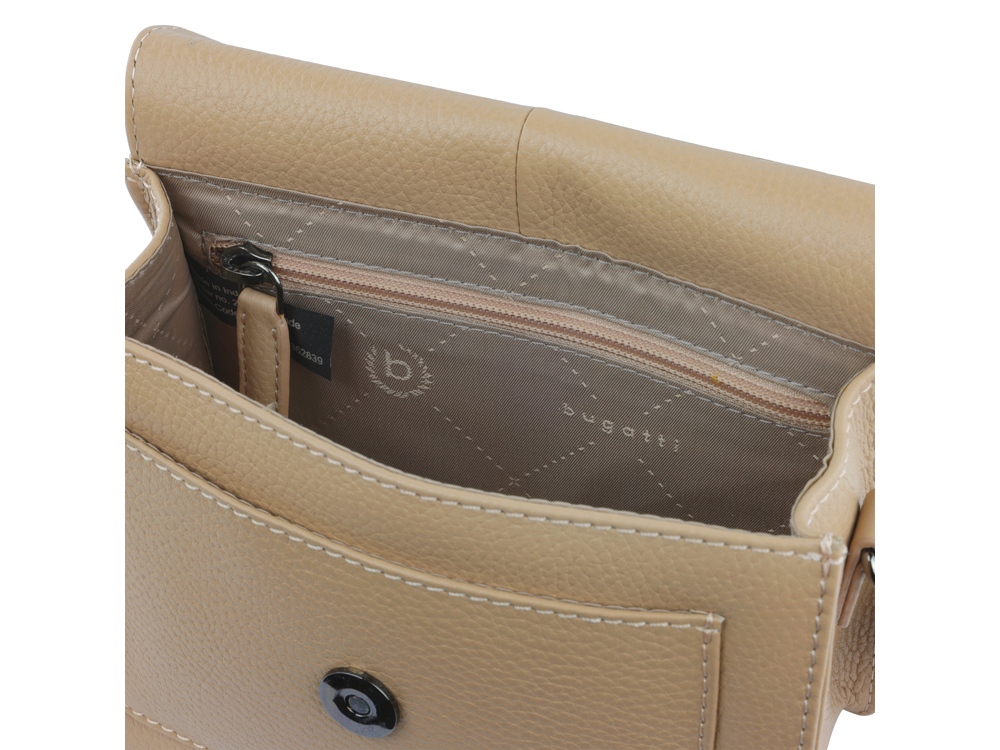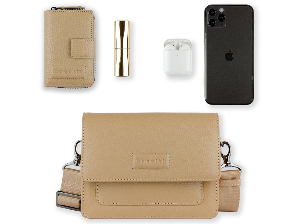 ЖЕНСКАЯ СУМКА ЧЕРЕЗ ПЛЕЧО ELSA Готовы к поездке в выходные? Мы раскрасим вашу ленту в соцсетях невероятной коллекцией ELSA. Коллекция ELSA предлагает широкий ассортимент аксессуаров и сумок разных форм и размеров, от элегантных кошельков и изящных наплечных сумочек для выхода в свет до вместительных шопперов и дорожных сумок для путешествий. Все модели серии изготовлены из высококачественной мягкой воловьей кожи и представлены в классическом черном, белом и бежевом цветах. Элегантное тиснение логотипа Bugatti придает очарование каждой модели. Коллекция выделяется продуманной функциональной организацией внутреннего пространства и защитой от радиочастотной идентификации RFID. Кошельки и ключницы оснащены специальным защитным слоем из фольги, который предотвращает незаконное сканирование вашей личной информации и препятствует списанию денежных средств с банковских карт. Какой бы аксессуар или сумку вы бы ни предпочли, будьте уверены, что с коллекцией ELSA вы точно окажетесь в центре внимания. СВОЙСТВА Функциональная организация: основное отделение на магнитной кнопке с карманом на молнии, передний открытый карман, задний карман на молнии, съемный регулируемый плечевой ремень (до 130 см). Материал: воловья кожа/полиэстер Размер: 18,5 х 8,5 х 14,5 см Вес: 0,385 кг