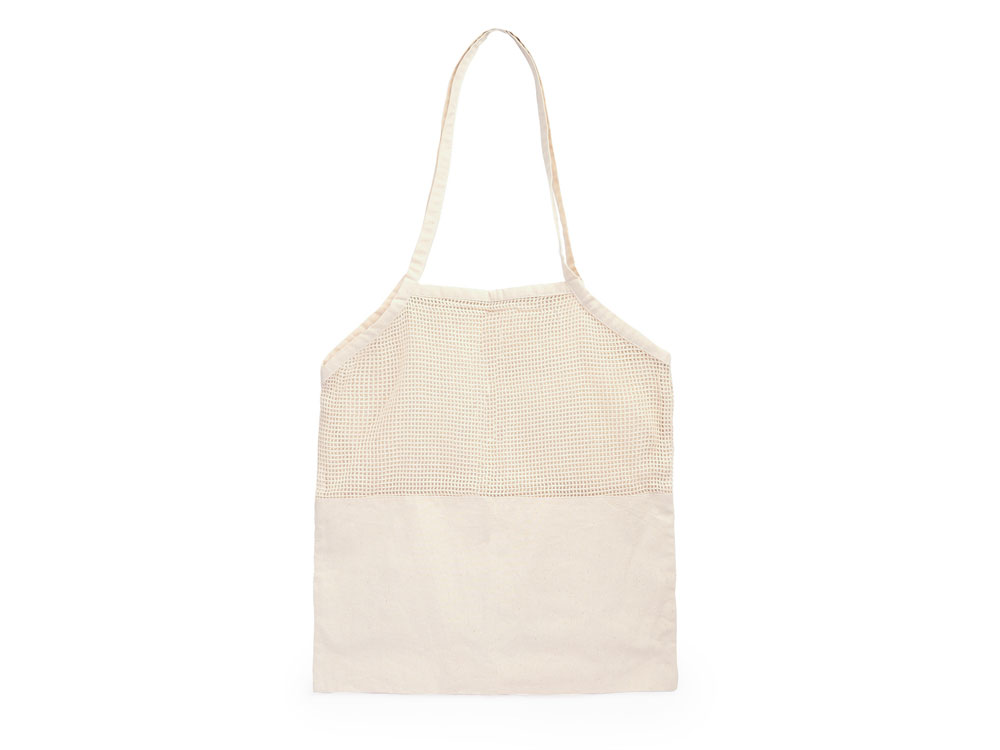Эко-сумка для фруктов из 100% хлопка натурального цвета с ручками длиной 60 см. 180 г/м2. Половина сумки из мягкого материала, половина из сетки.