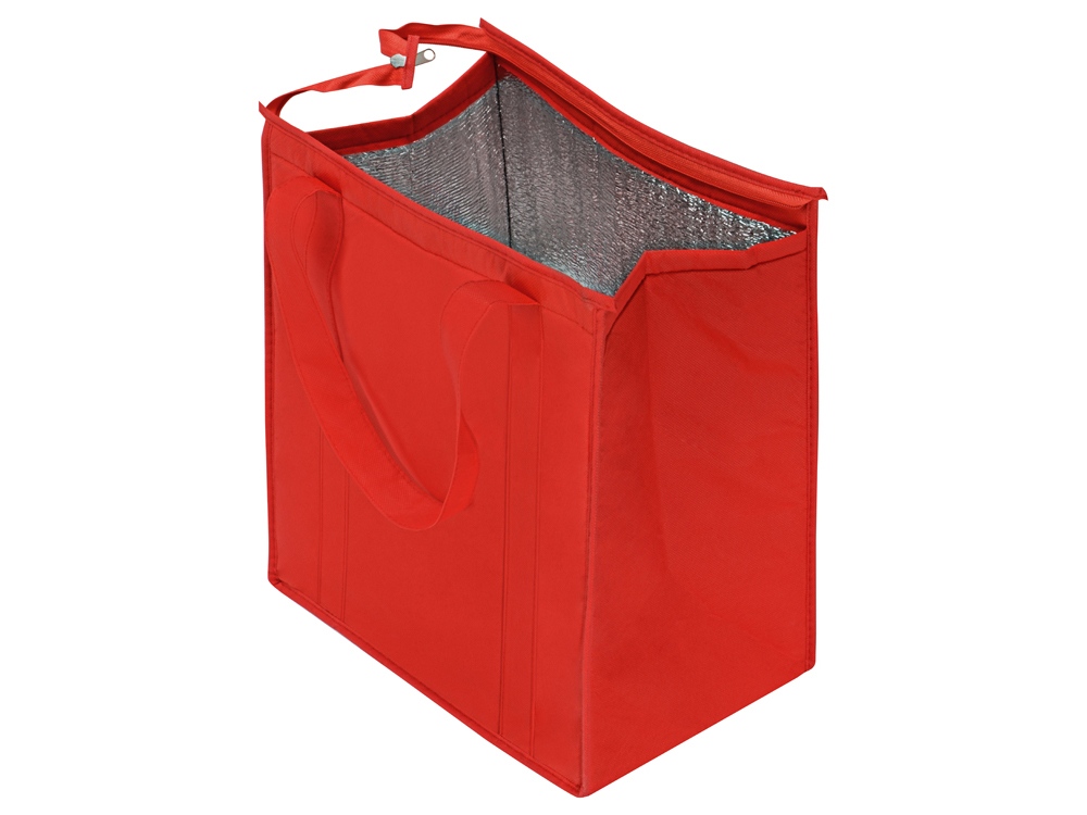 Сумка для покупок Zeus с изоляцией. Основное отделение на молнии. Изоляция при помощи водонепроницаемой подкладки, проклеенной методом горячей спайки. Высота ручек 23,5 см. Сумка может быть вторично переработана и является отличной альтернативой пластиковым пакетам. Нетканый полипропилен 80 г/м2.
