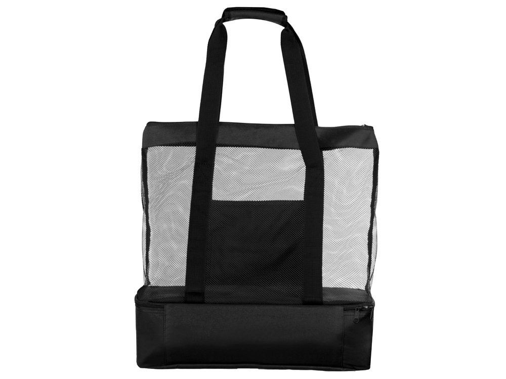 Вместительная пляжная сумка с отделением -холодильником внизу. Удобно брать холодные напитки на пляж. Сетчатая ткань способствует просыханию пляжных вещей. Комфортные длинные ручки фиксируются вместе застежкой липучкой. Все отделения и наружный карман для мелочей застегиваются на молнию. Благодаря большой вместительности сумку можно использовать для шоппинга.