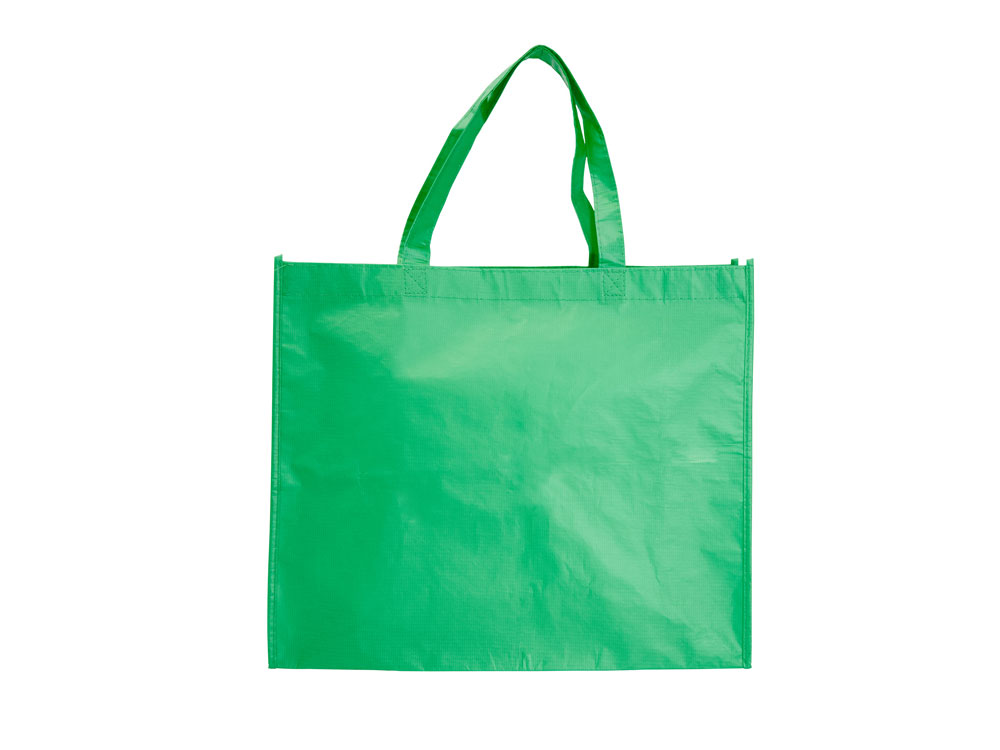 Многоразовая сумка для покупок с матовой ламинированной отделкой. Изготовлена из прочного RPET с усиленными ручками и соответствующей окантовкой.