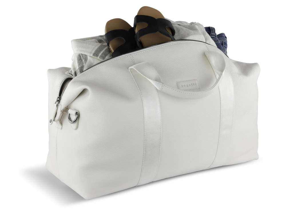 ДОРОЖНАЯ СУМКА ELSA Готовы к поездке в выходные? Мы раскрасим вашу ленту в соцсетях невероятной коллекцией ELSA. Коллекция ELSA предлагает широкий ассортимент аксессуаров и сумок разных форм и размеров, от элегантных кошельков и изящных наплечных сумочек для выхода в свет до вместительных шопперов и дорожных сумок для путешествий. Все модели серии изготовлены из высококачественной мягкой воловьей кожи и представлены в классическом черном, белом и бежевом цветах. Элегантное тиснение логотипа Bugatti придает очарование каждой модели. Коллекция выделяется продуманной функциональной организацией внутреннего пространства и защитой от радиочастотной идентификации RFID. Кошельки и ключницы оснащены специальным защитным слоем из фольги, который предотвращает незаконное сканирование вашей личной информации и препятствует списанию денежных средств с банковских карт. Какой бы аксессуар или сумку вы бы ни предпочли, будьте уверены, что с коллекцией ELSA вы точно окажетесь в центре внимания. СВОЙСТВА Функциональная организация: основное отделение на молнии с карманом на молнии, 2 открытых кармана, задний карман на молнии, 2 ручки, съемный регулируемый плечевой ремень (до 140 см). Материал: воловья кожа/полиэстер Размер: 47 х 22 х 24/30 см Вес: 1,2 кг