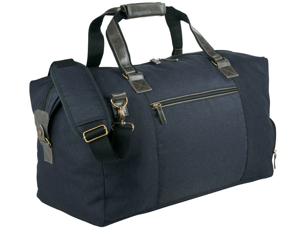 Дорожная сумка Capitol. Обозначьте свой особый стиль с коллекцией сумок Capitol. Сочетание современного и классического дизайна. Основное отделение на молнии, отделение для обуви на молнии, передний карман на молнии, твердое дно в комплект не входит. Отстегивающийся регулируемый ремень на плечо. Виниловые аксессуары для дополнительных возможностей нанесения. 600D полиэстер.