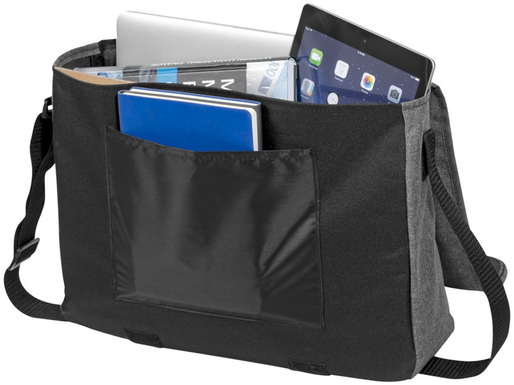 Сумка Heathered для ноутбука 15,6. Основное отделение с уплотненным отделением для ноутбука 15,6 и панелью - органайзером. Передний карман на молнии для легкого доступа к телефону или нужным мелочам. Регулируемый ремень на плечо. 600d полиэстер и ПВХ сзади.