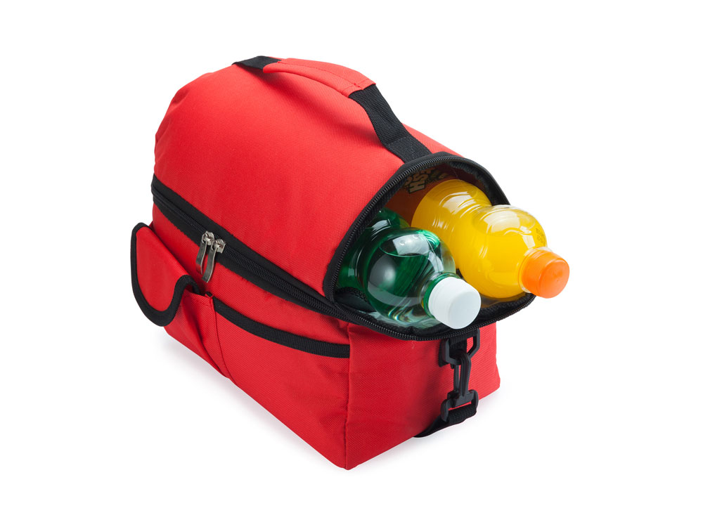 Универсальная сумка-холодильник из полиэстера 600D. Изотермические внутренние отделения и практичные внешние карманы. Регулируемый мягкий плечевой ремень с карабином. Идеальная изотермическая сумка для переноски еды на работу.
