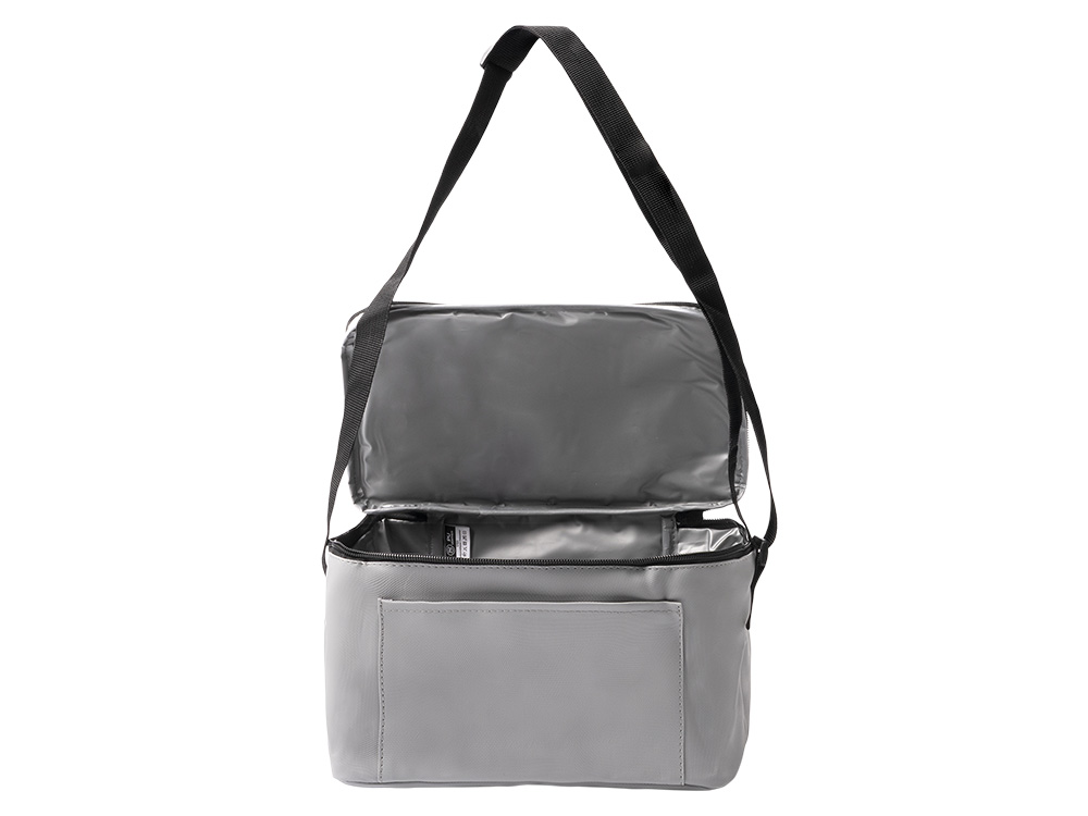 Сумка-холодильник из искусственной кожи с регулируемой лямкой. Внутреннее теплоизолирующее отделение. Практичный внешний передний карман.