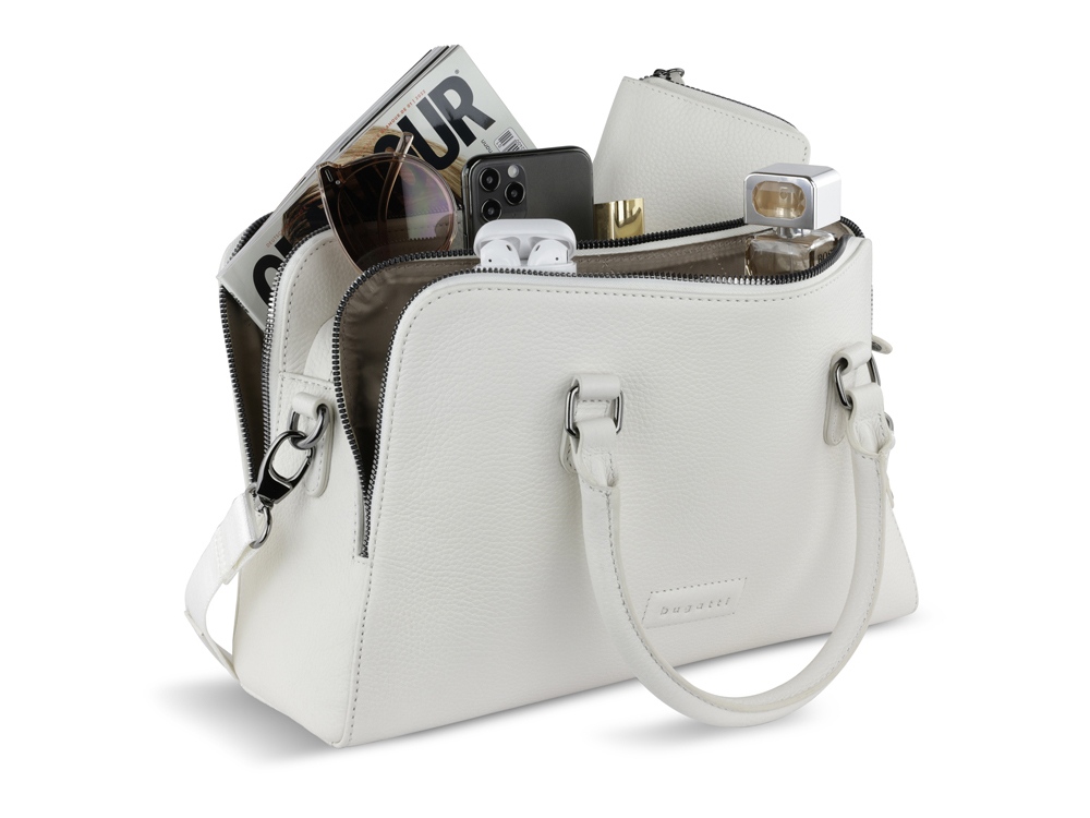 ЖЕНСКАЯ СУМКА ЭЛЬЗА | ELSA Готовы к поездке в выходные? Мы раскрасим вашу ленту в соцсетях невероятной коллекцией ЭЛЬЗА | ELSA. Коллекция ЭЛЬЗА | ELSA предлагает широкий ассортимент аксессуаров и сумок разных форм и размеров, от элегантных кошельков и изящных наплечных сумочек для выхода в свет до вместительных шопперов и дорожных сумок для путешествий. Все модели серии изготовлены из высококачественной мягкой воловьей кожи и представлены в классическом черном, белом и бежевом цветах. Элегантное тиснение логотипа Bugatti придает очарование каждой модели. Коллекция выделяется продуманной функциональной организацией внутреннего пространства и защитой от радиочастотной идентификации RFID. Кошельки и ключницы оснащены специальным защитным слоем из фольги, который предотвращает незаконное сканирование вашей личной информации и препятствует списанию денежных средств с банковских карт. Какой бы аксессуар или сумку вы бы ни предпочли, будьте уверены, что с коллекцией ЭЛЬЗА | ELSA вы точно окажетесь в центре внимания. СВОЙСТВА: Функциональная организация: 3 отделения на молнии с карманом на молнии и 2 открытыми карманами, 2 ручки, съемный регулируемый плечевой ремень до 130 см Материал: воловья кожа/полиэстер Размер: 32 х 13 х 22 см Вес: 0,83 кг