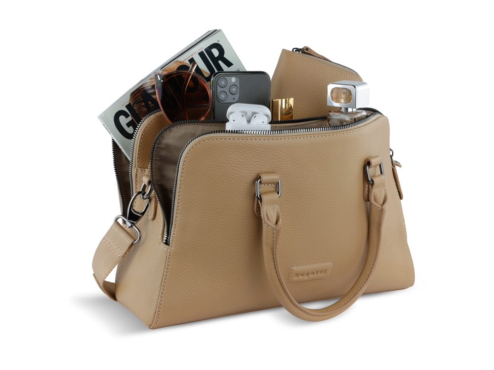 ЖЕНСКАЯ СУМКА ЭЛЬЗА | ELSA Готовы к поездке в выходные? Мы раскрасим вашу ленту в соцсетях невероятной коллекцией ЭЛЬЗА | ELSA. Коллекция ЭЛЬЗА | ELSA предлагает широкий ассортимент аксессуаров и сумок разных форм и размеров, от элегантных кошельков и изящных наплечных сумочек для выхода в свет до вместительных шопперов и дорожных сумок для путешествий. Все модели серии изготовлены из высококачественной мягкой воловьей кожи и представлены в классическом черном, белом и бежевом цветах. Элегантное тиснение логотипа Bugatti придает очарование каждой модели. Коллекция выделяется продуманной функциональной организацией внутреннего пространства и защитой от радиочастотной идентификации RFID. Кошельки и ключницы оснащены специальным защитным слоем из фольги, который предотвращает незаконное сканирование вашей личной информации и препятствует списанию денежных средств с банковских карт. Какой бы аксессуар или сумку вы бы ни предпочли, будьте уверены, что с коллекцией ЭЛЬЗА | ELSA вы точно окажетесь в центре внимания. СВОЙСТВА: Функциональная организация: 3 отделения на молнии с карманом на молнии и 2 открытыми карманами, 2 ручки, съемный регулируемый плечевой ремень до 130 см Материал: воловья кожа/полиэстер Размер: 32 х 13 х 22 см Вес: 0,83 кг