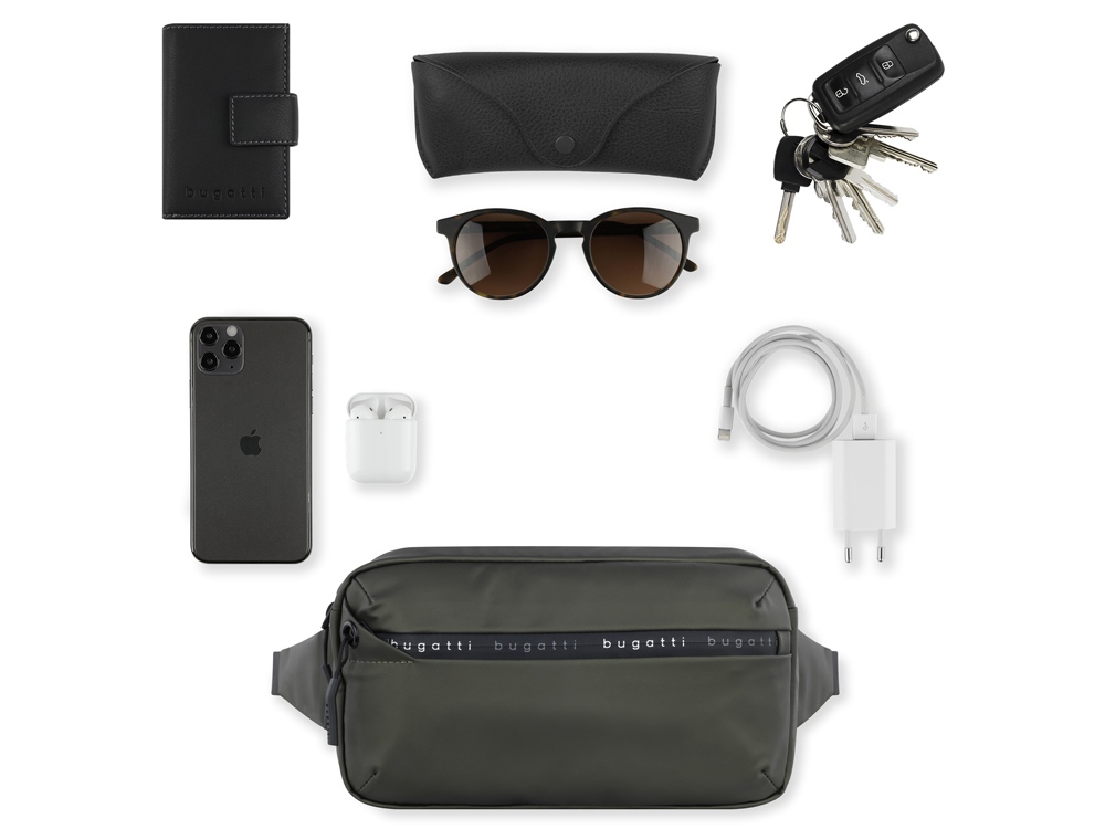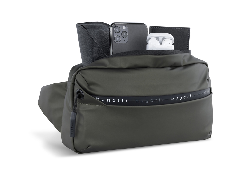 СУМКА НА ПОЯС BLANC Рады представить вам нашу новую серию универсальных и чрезвычайно стильных сумок и рюкзаков Blanc. В этой линейке наши дизайнеры добились идеального сочетания дизайна, функциональности и пригодности для повседневного использования. В качестве основного материала используется тарпаулин - очень лёгкая ткань с водоотталкивающими свойствами. Скрытые молнии с логотипом Bugatti не только защищают от проникновения влаги, но и дополняют стильный дизайн коллекции. С сумками Blanc будьте готовы быть в центре внимания! СВОЙСТВА Внутренняя организация: основное отделение на молнии с 2 открытыми карманами Внешняя организация: передний карман на молнии, задний карман на молнии, регулируемый поясной ремень (от 75 до 160 см) Размер: 26 x 5,5 x 13,5 см Вес: 0,20 кг Материал: тарпаулин / полиэстер