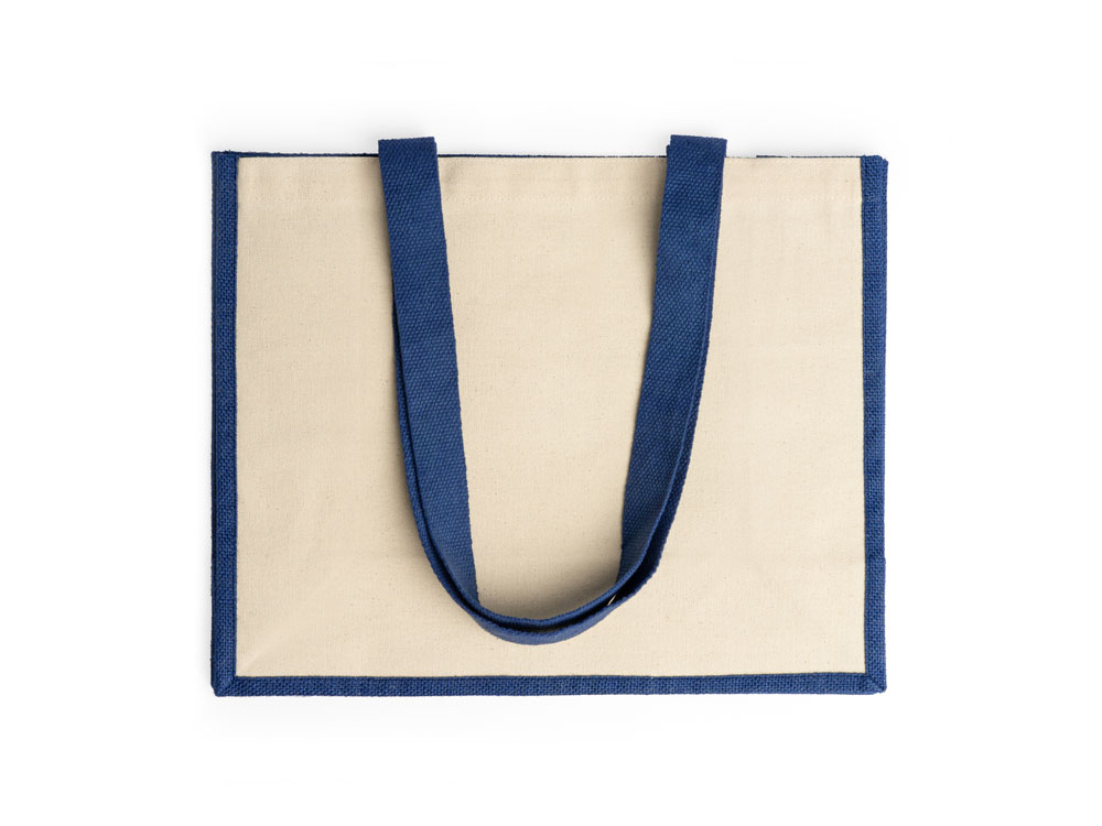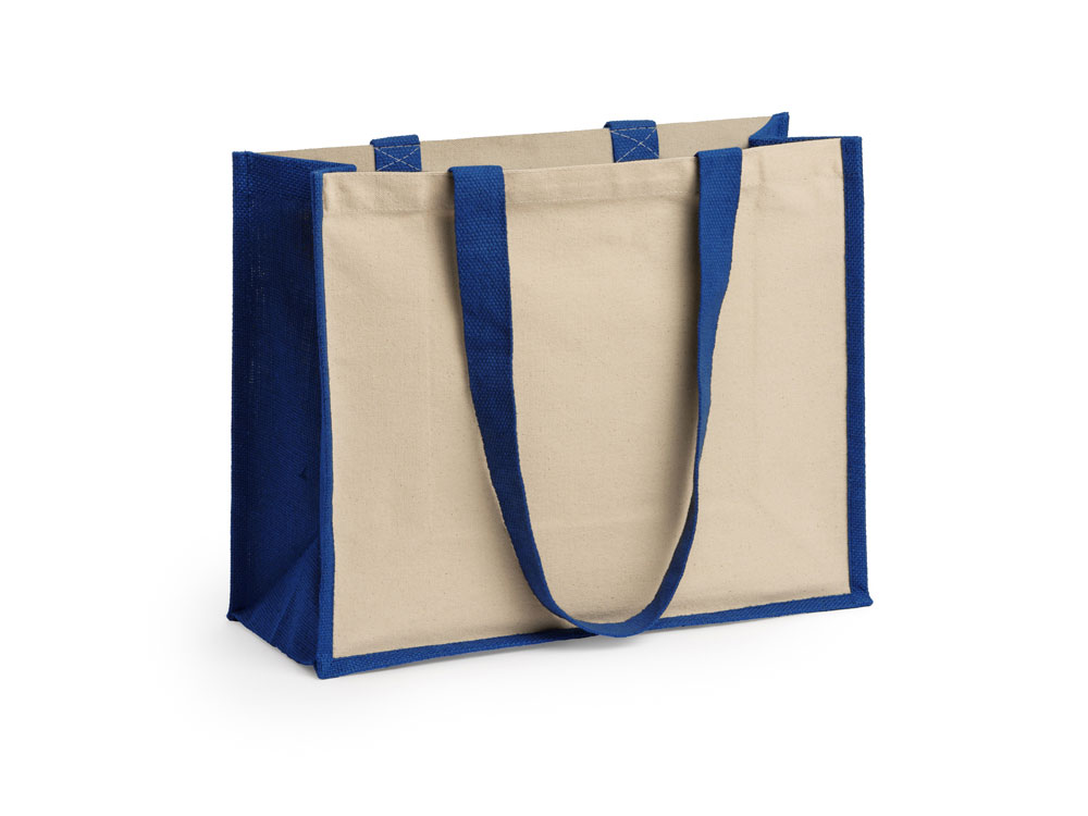 Сумка из ламинированного джута с длинными ручками и хлопковыми боковыми сторонами. Идеально подходит для нанесения.