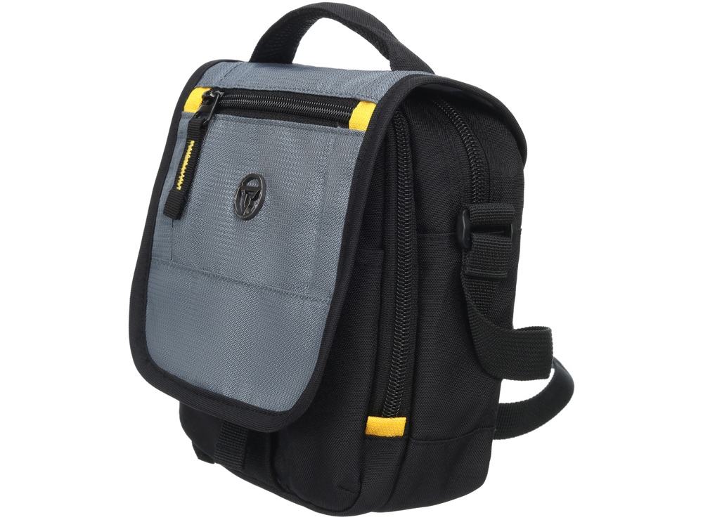 Сумка через плечо TORBER – это надёжное хранение и транспортировка личных вещей. Сумка имеет центральное отделение с защитным клапаном. Изделие выполнено в чёрном цвете с серыми вставками и элементами дизайна желтого цвета. Компактный размер изделия – 15х5х22 см, аккуратно скрывает вместительный объём сумки. Сумка изготовлена из высококачественного полиэстера, который отличается устойчивостью к загрязнителям и истиранию. Сумка включает два основных отделения на широкой молнии, 8 карманов, карабин для хранения ключей. Для удобной транспортировки предусмотрена эргономичная ручка-переноска и плечевой ремень