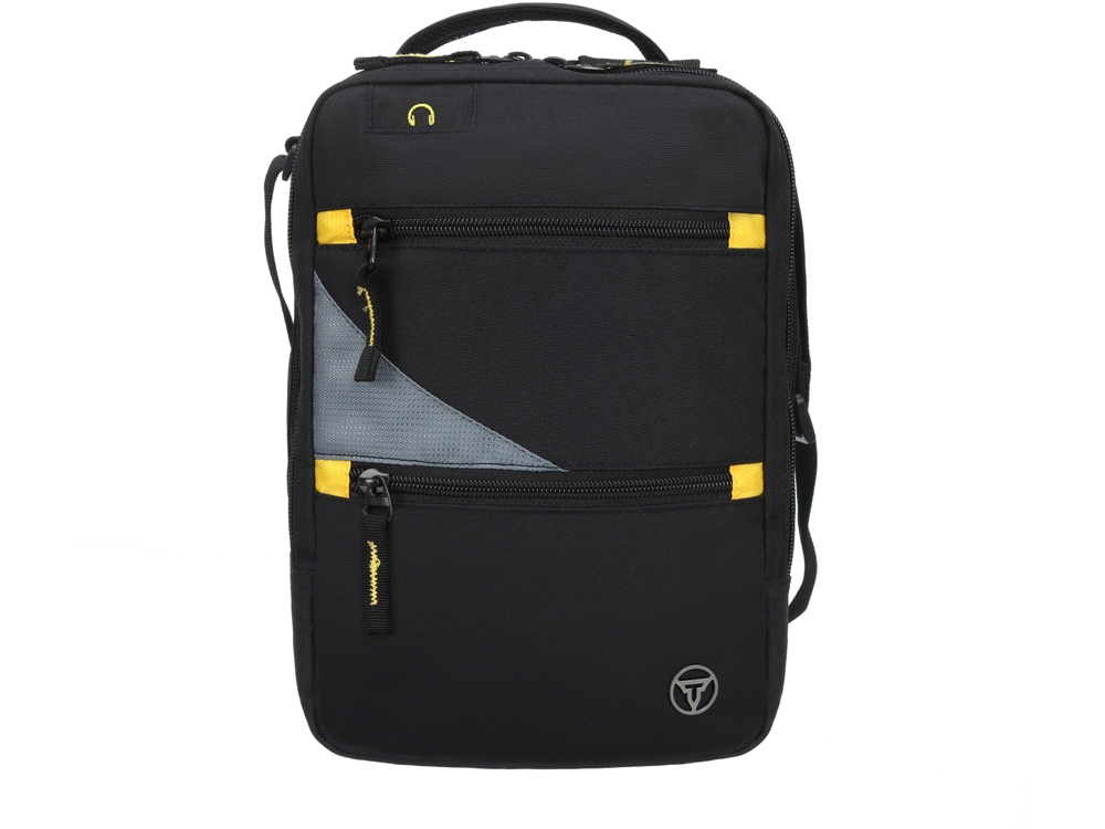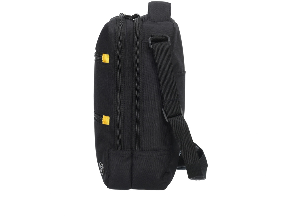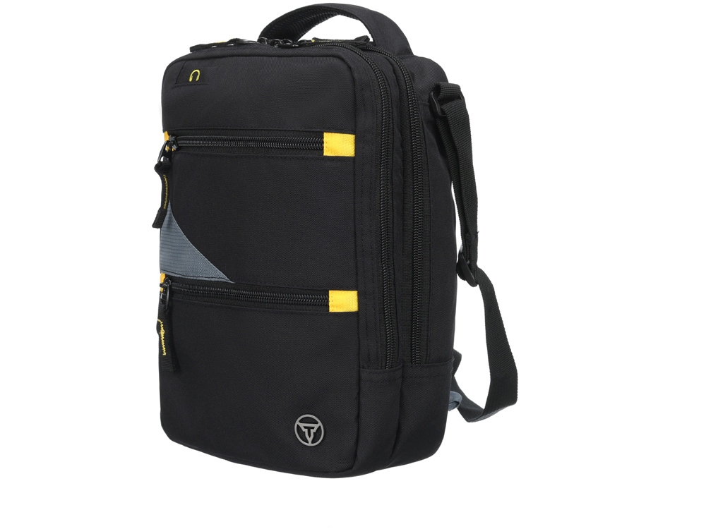 Сумка через плечо TORBER предназначена для безопасной транспортировки деловой документации и электронных гаджетов. Сумка в чёрном цвете с серыми и желтыми акцентами элегантно смотрится в городских условиях. Компактные размеры – 22 x 9 x 29 см, выгодно скрывают вместительный объём изделия. Сумка-планшет содержит 2 основных отделения, 6 дополнительных карманов на молнии и липучке, а также специальные отделения для рабочих аксессуаров и пишущих принадлежностей. Сумка имеет эргономичную ручку для переноски и плечевой регулируемый ремень.