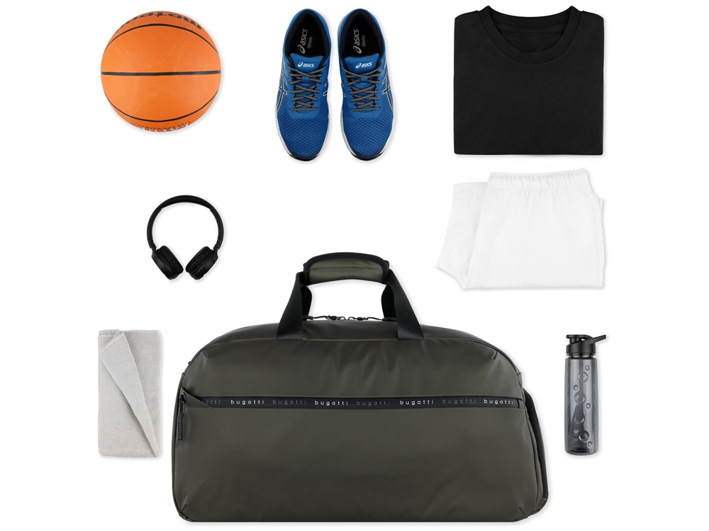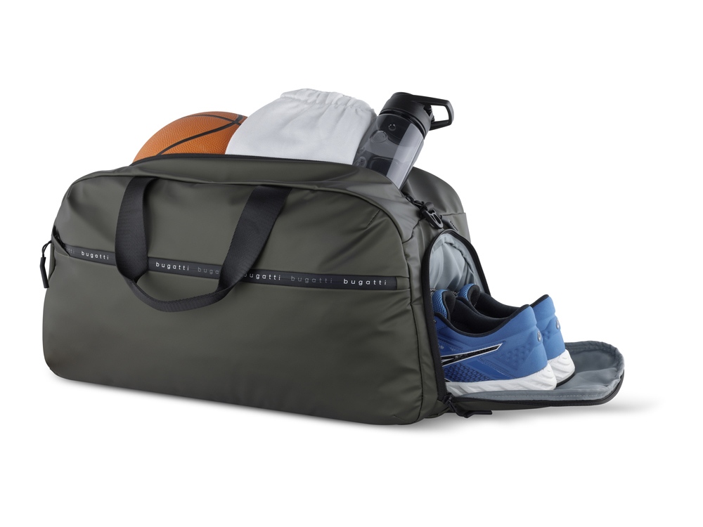 СПОРТИВНАЯ СУМКА БЛАНК | BLANC Рады представить вам нашу новую серию универсальных и чрезвычайно стильных сумок и рюкзаков БЛАНК | BLANC. В этой линейке наши дизайнеры добились идеального сочетания дизайна, функциональности и пригодности для повседневного использования. В качестве основного материала используется тарпаулин - очень лёгкая ткань с водоотталкивающими свойствами. Скрытые молнии с логотипом Bugatti не только защищают от проникновения влаги, но и дополняют стильный дизайн коллекции. С сумками БЛАНК | BLANC будьте готовы быть в центре внимания! СВОЙСТВА: Внутренняя организация: основное отделение на молнии с 2 открытыми карманами и карманом на молнии Внешняя организация: передний карман на молнии, ремень для соединения с телескопической ручкой чемодана, боковой карман на молнии для обуви, ручки высотой 14 см, съёмный регулируемый плечевой ремень (до 130 см) Размер: 52 x 26 x 27,5 см Вес: 0,65 кг Объем: 33 л Материал: тарпаулин / полиэстер