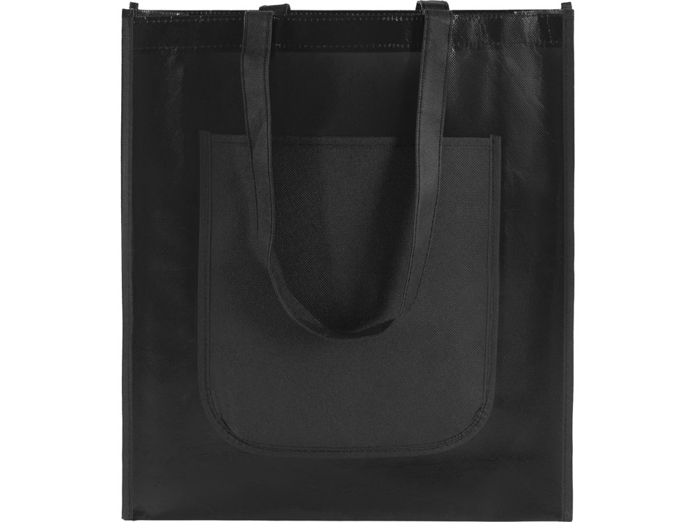 Большая вместительная и невесомая сумка с ламинированной поверхностью - всегда незаменимый помощник под рукой. Спереди расположен большой карман под ваш логотип.