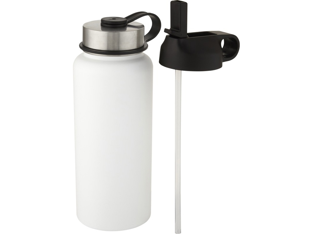 Спортивная бутылка два в одном из нержавеющей стали с двойными стенками, вакуумной медной изоляцией и двумя крышками: одна крышка с трубочкой для удобного питья и одна герметичная навинчивающаяся крышка с петлей для переноски. Изолированная конструкция из нержавеющей стали 18/8 предотвращает образование конденсата на наружной стороне бутылки, а современное порошковое покрытие обеспечивает чрезвычайную прочность. Широко открывающаяся горловина для удобного наполнения, разливания и мытья. Не содержит БФА, испытана и одобрена в соответствии с немецким законодательством о безопасности пищевых продуктов (LFGB). Проверена на содержание фталатов и одобрена для использования в соответствии с правилами REACH. Идеально подходит для кубиков льда. Объем: 1 литра. Рекомендуется мыть вручную. В подарочной коробке из переработанного картона.
